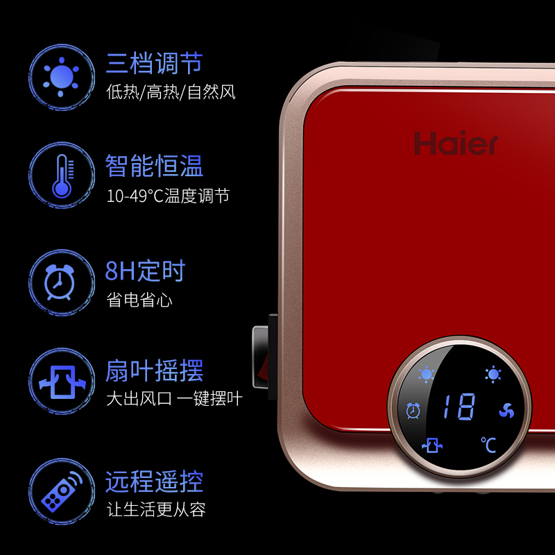 海尔取暖器家用暖风机浴室卫生间壁挂电暖气挂壁冬季神器2024新款