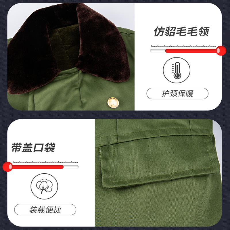 老式棉绿军大衣冬大衣男冬季加厚冷库防寒服东北大衣劳保棉服