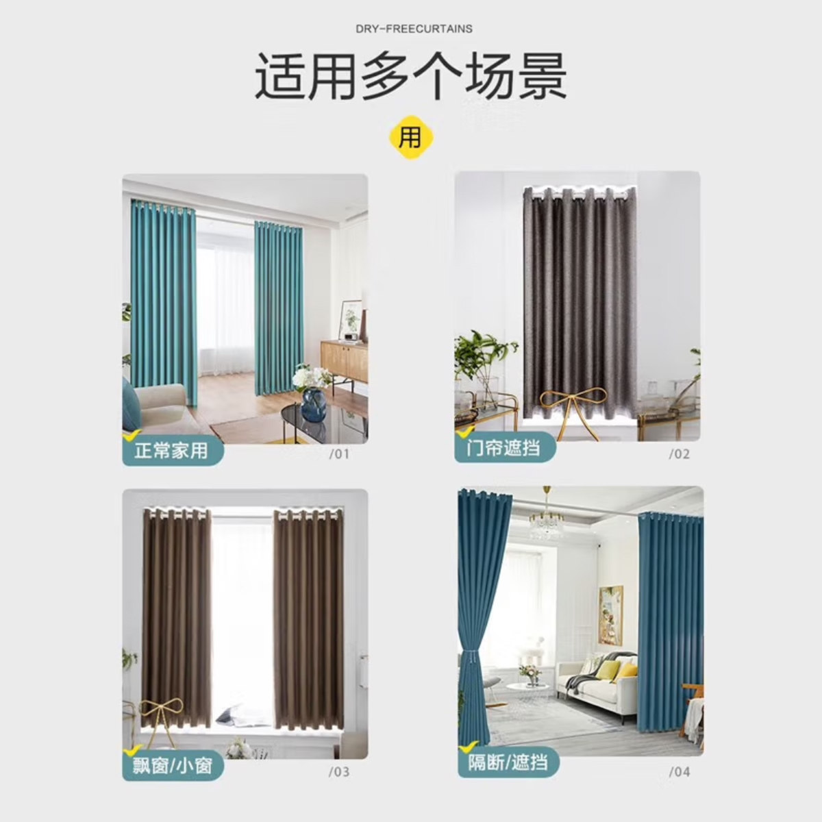 水星家纺卧室窗帘免打孔安装飘窗伸缩杆遮阳台全遮光简易家用布帘