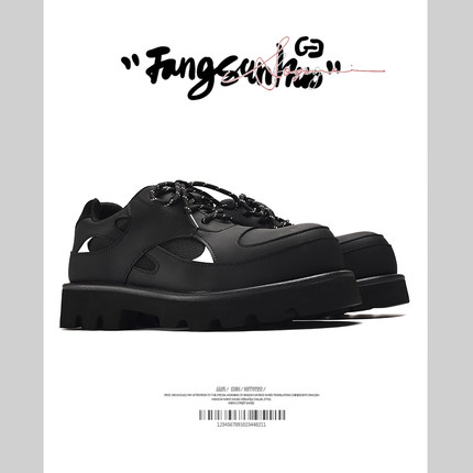 @方三火 小众原创ins黑色亚光的德比鞋男厚底增高英伦通勤皮鞋男