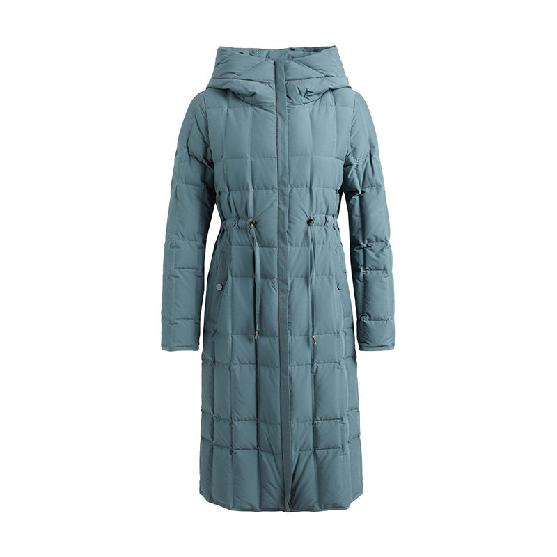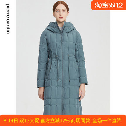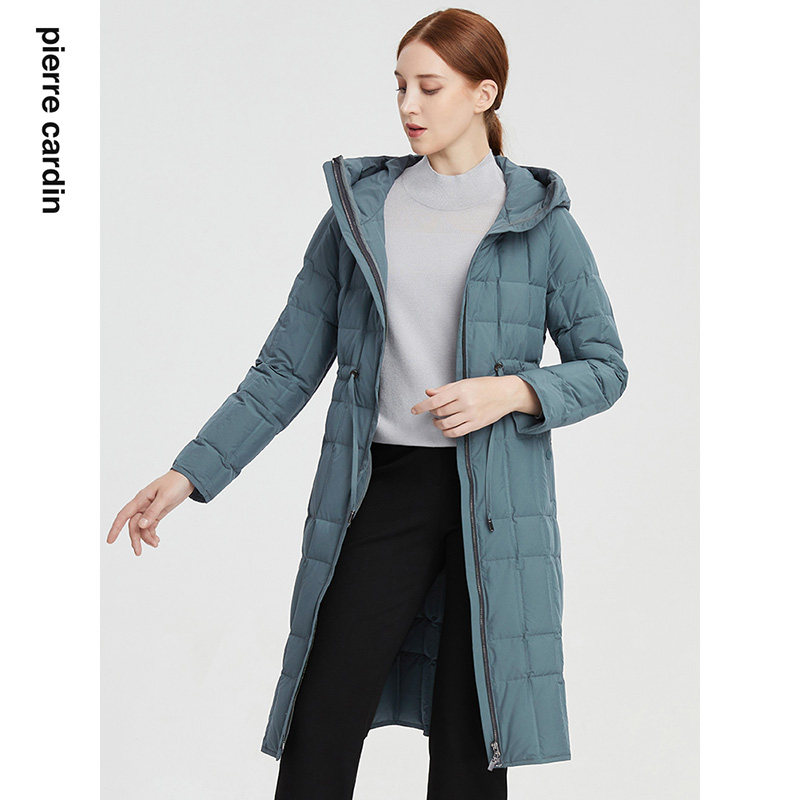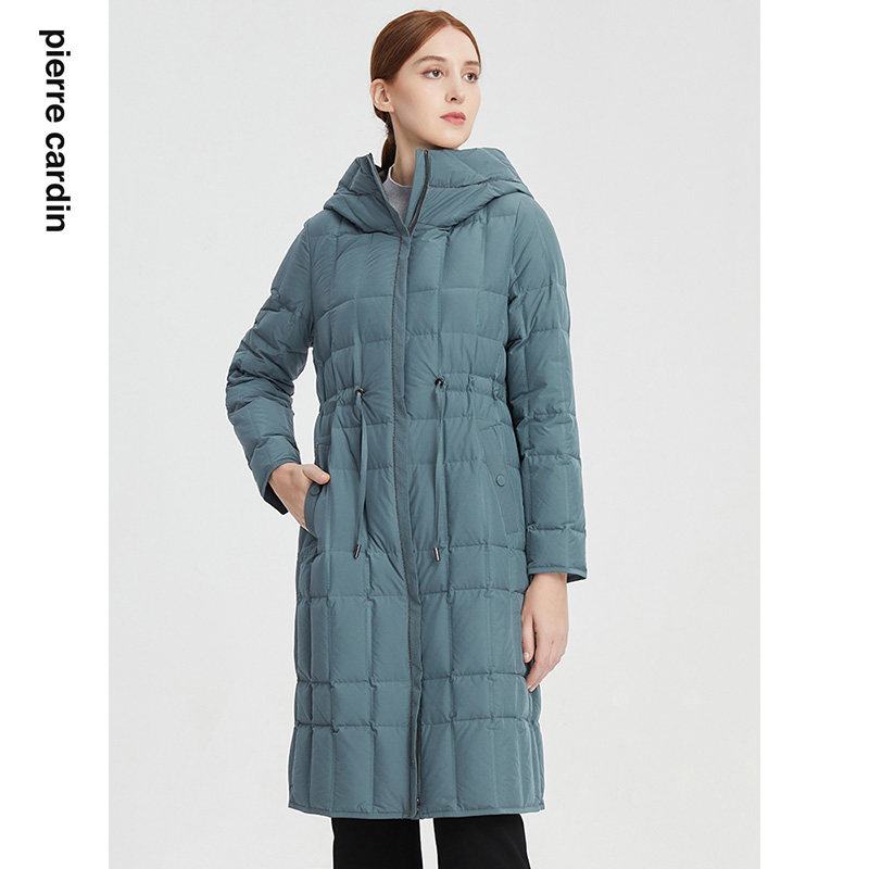 商场同款皮尔卡丹女装羽绒服简约白鸭绒通勤连帽中长款羽绒服