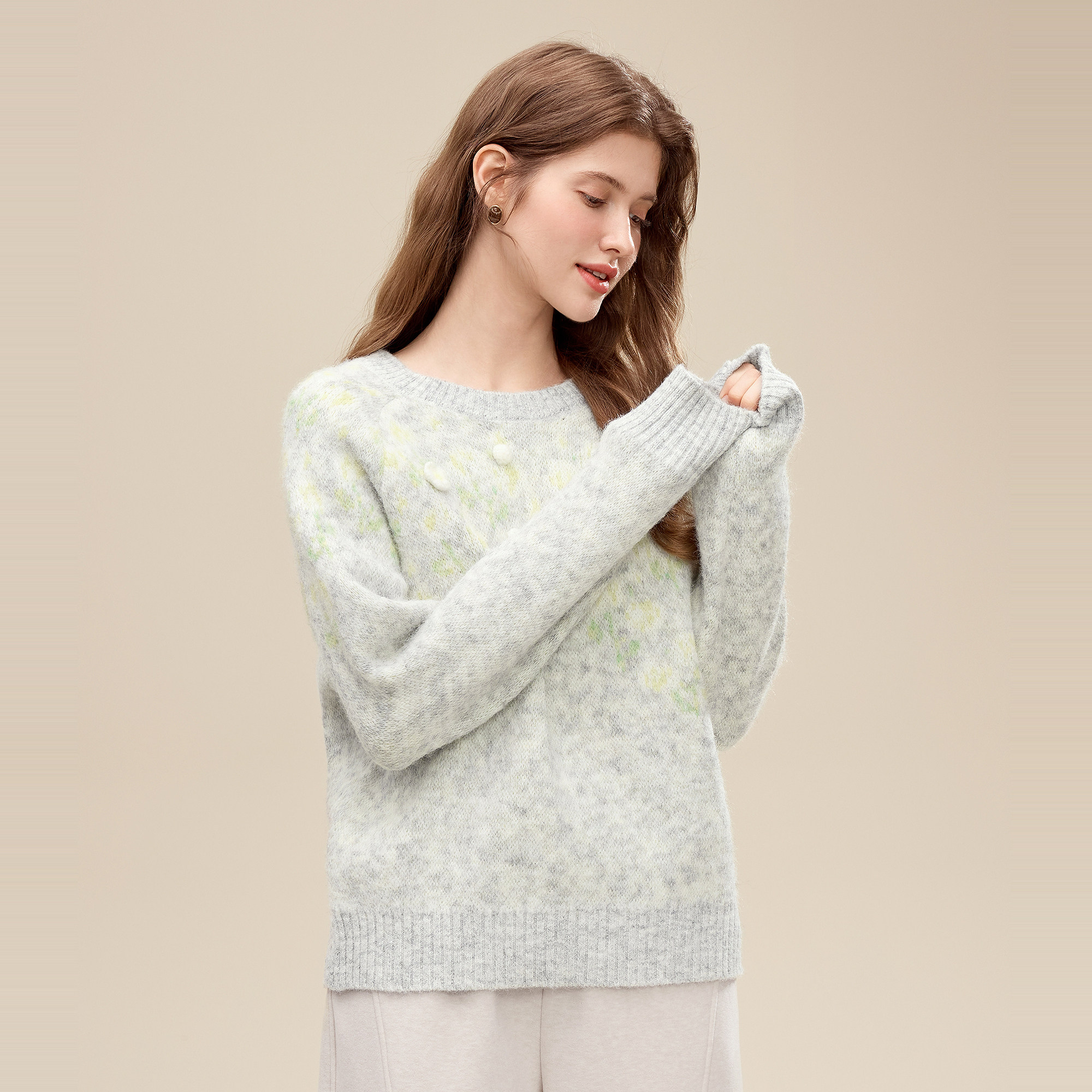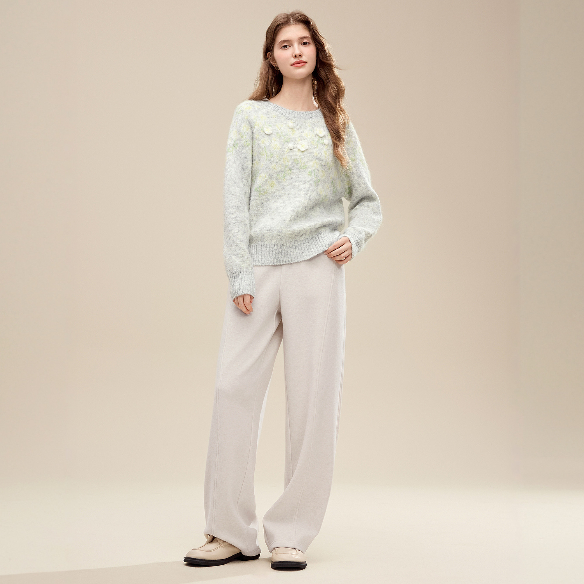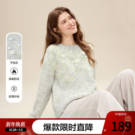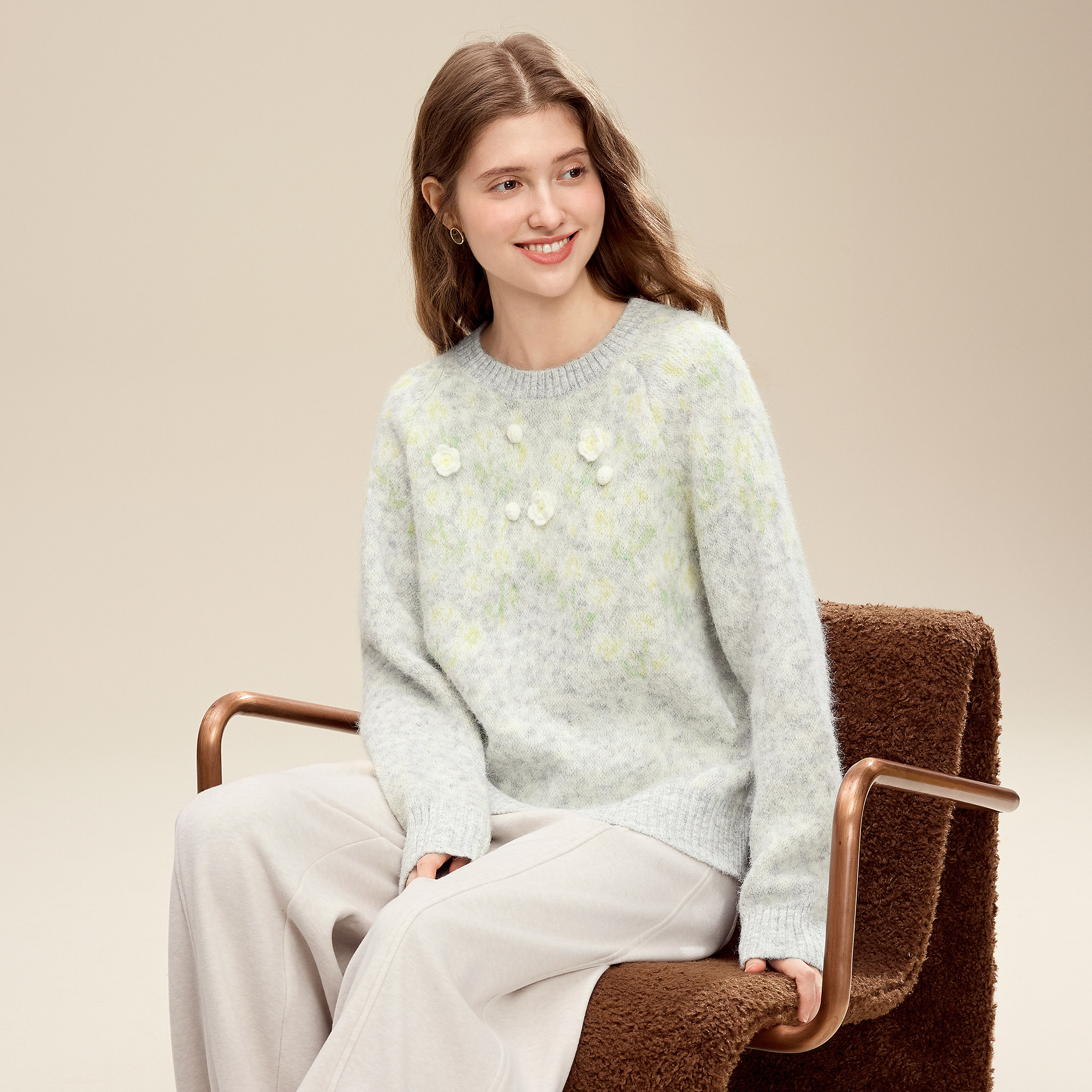 betu百图设计感立体花圆领毛衣女套头2025年冬季新款软糯风毛衫