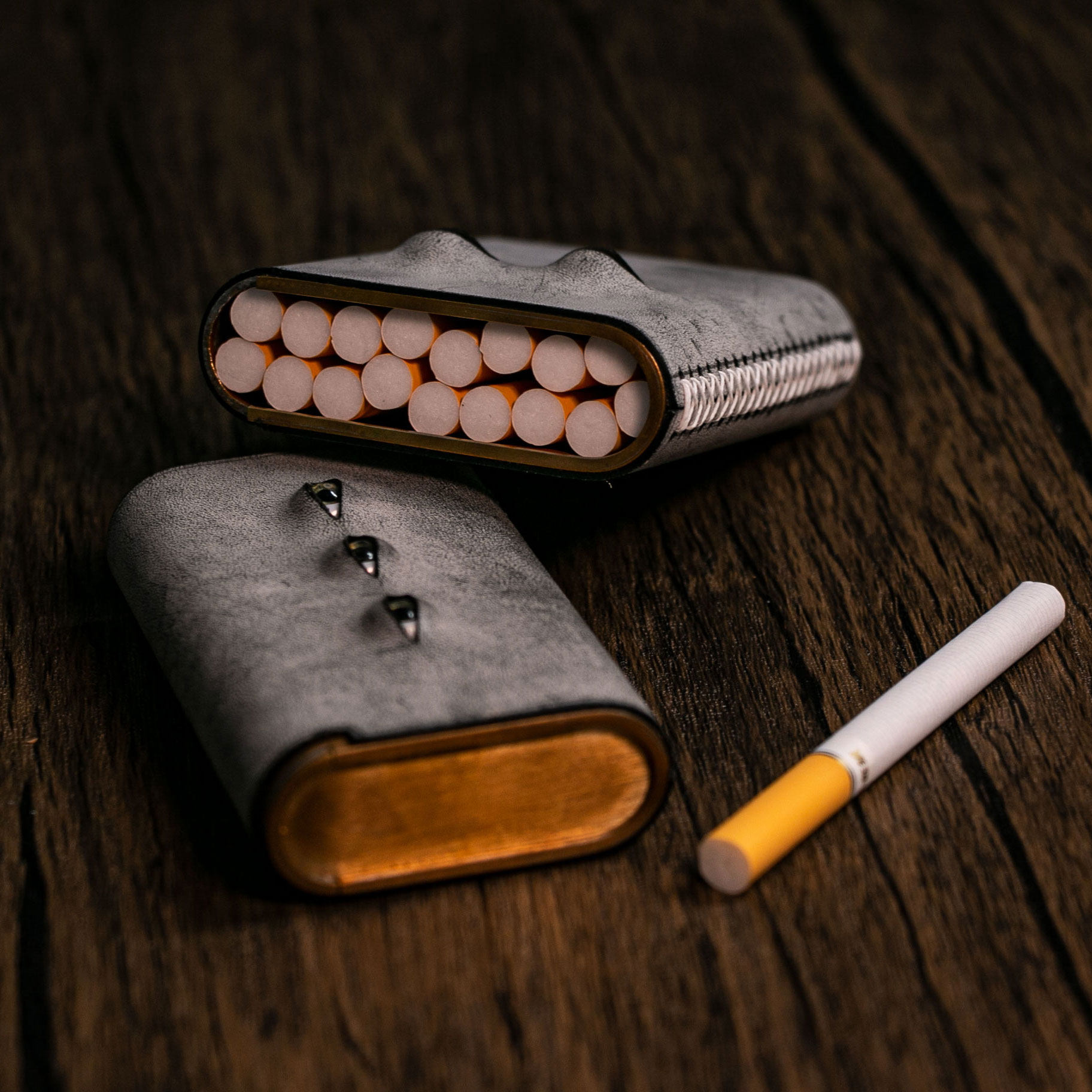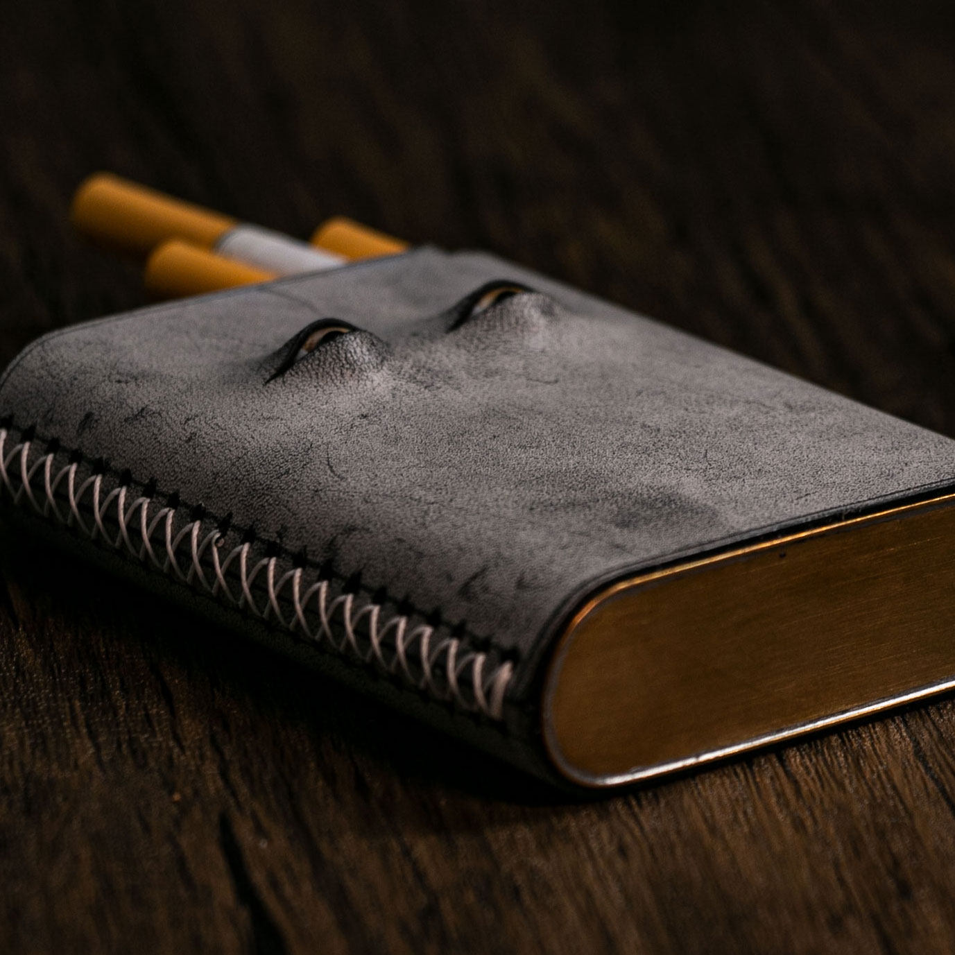 手作手工复古风格植鞣牛皮便携创意礼品眼睛黄铜个性烟盒香烟盒