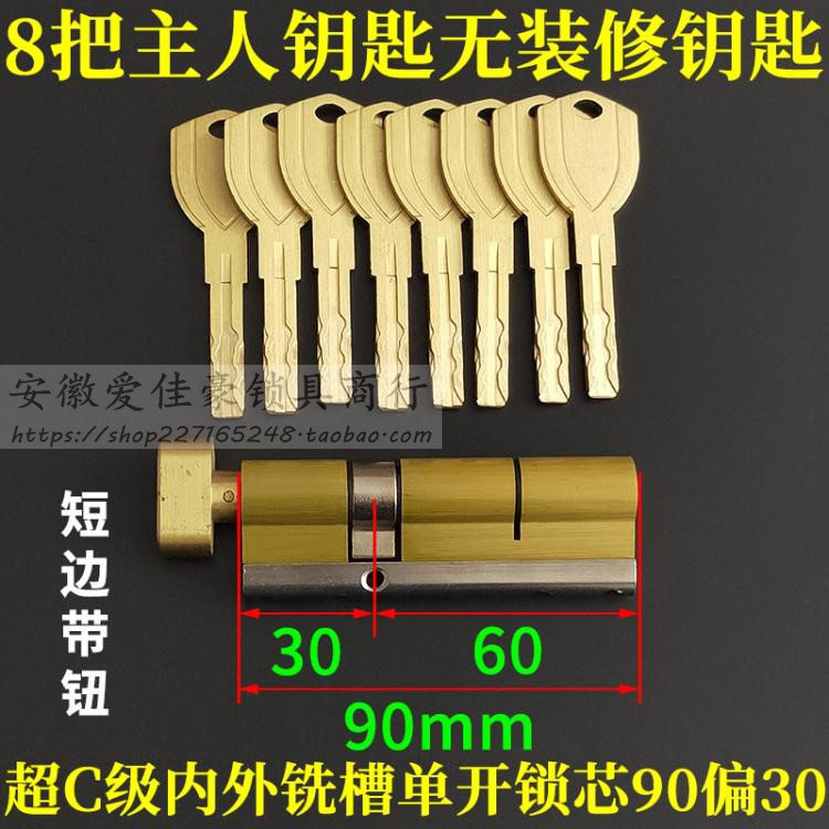 断桥铝门大葫芦单开锁芯90=30+60家用防盗门超C级带旋钮锁芯40+50