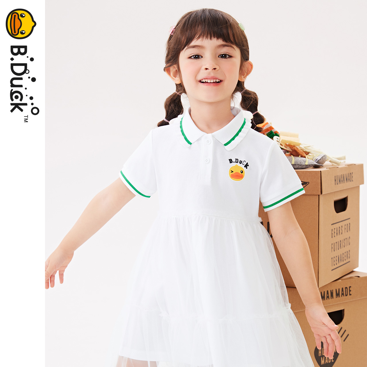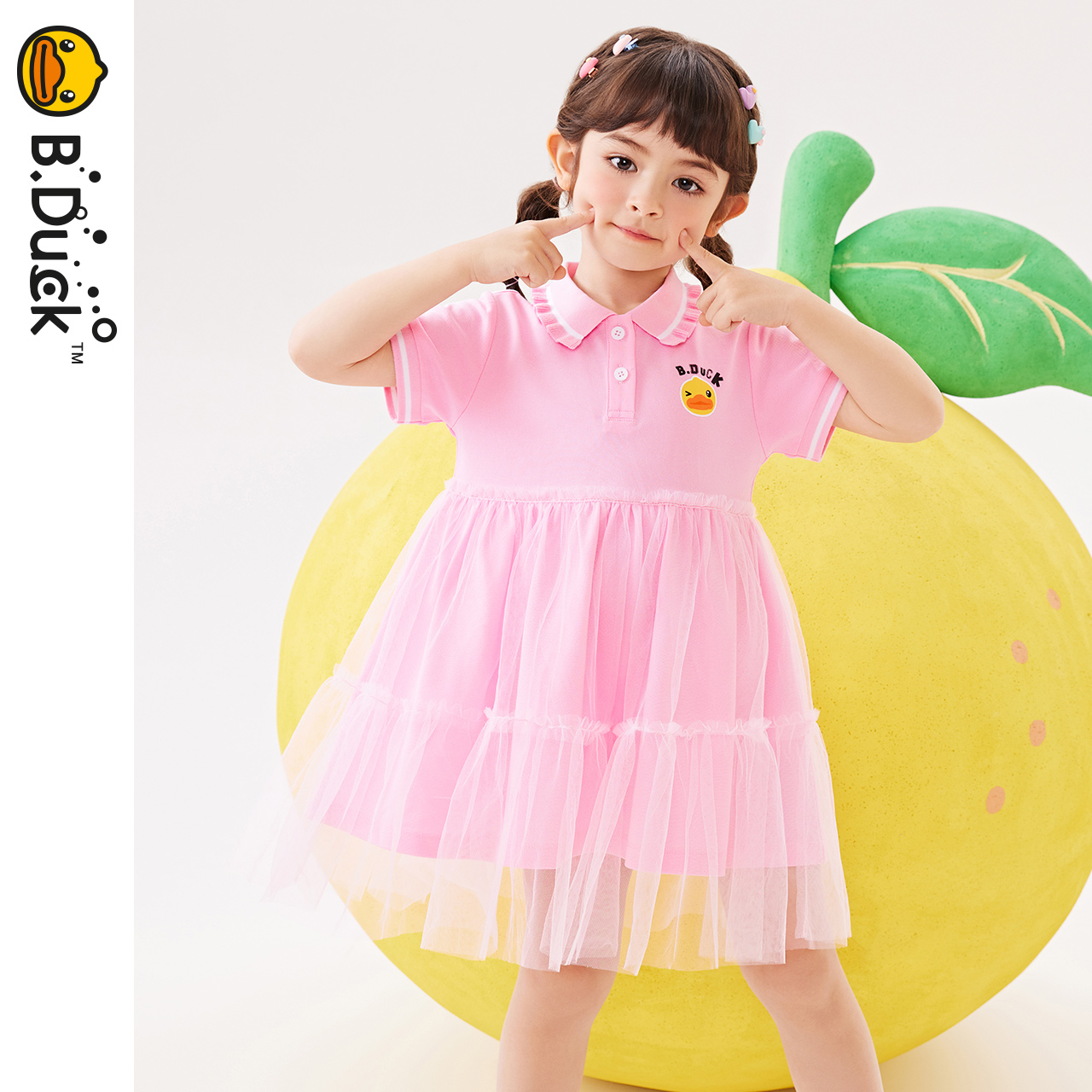 bduck小黄鸭童装女童连衣裙儿童裙子夏装洋气小女孩网纱裙POLO裙