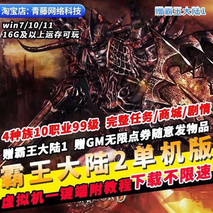 霸王大陆2单机版99级10职业完整任务商城GM无限点券刷装备PC网游