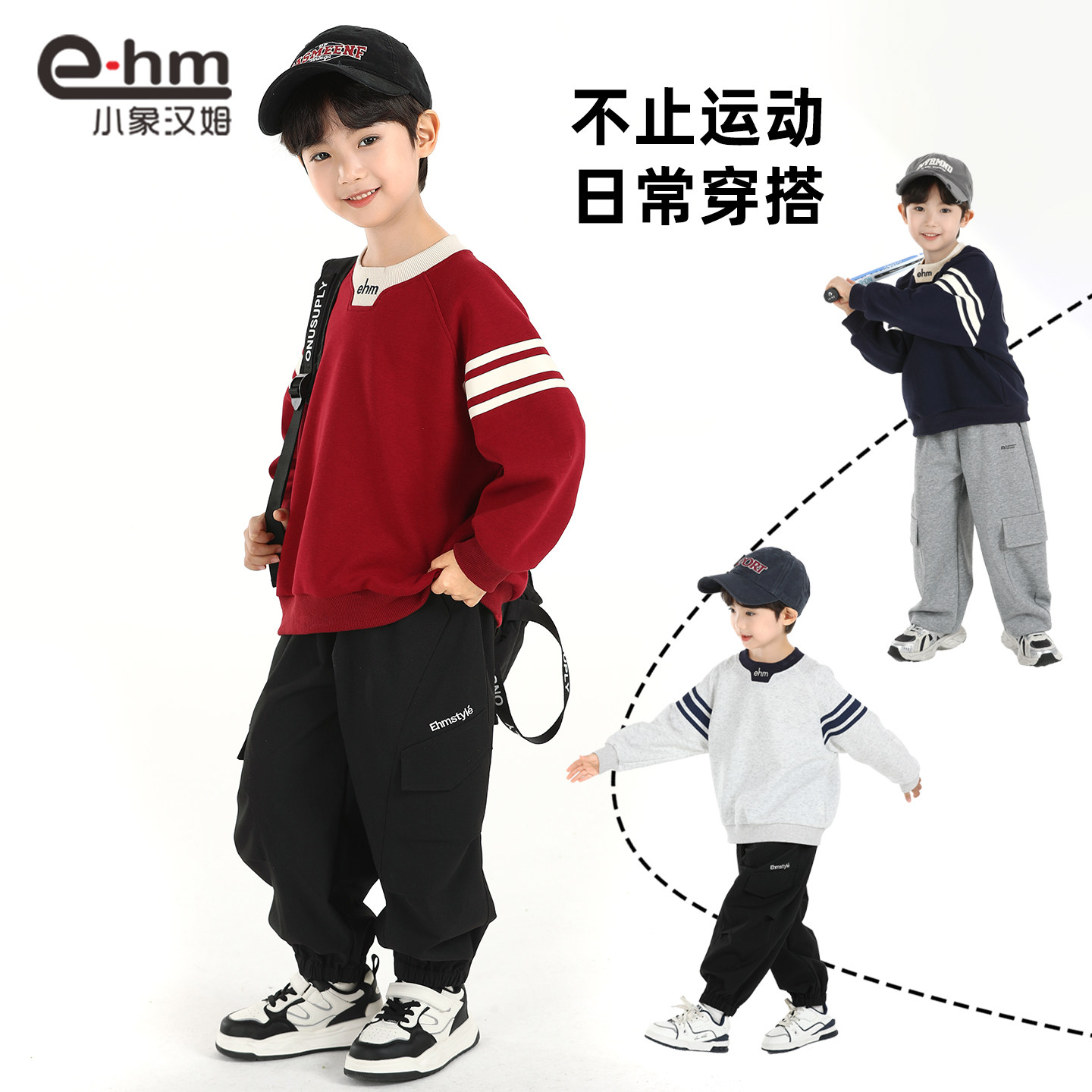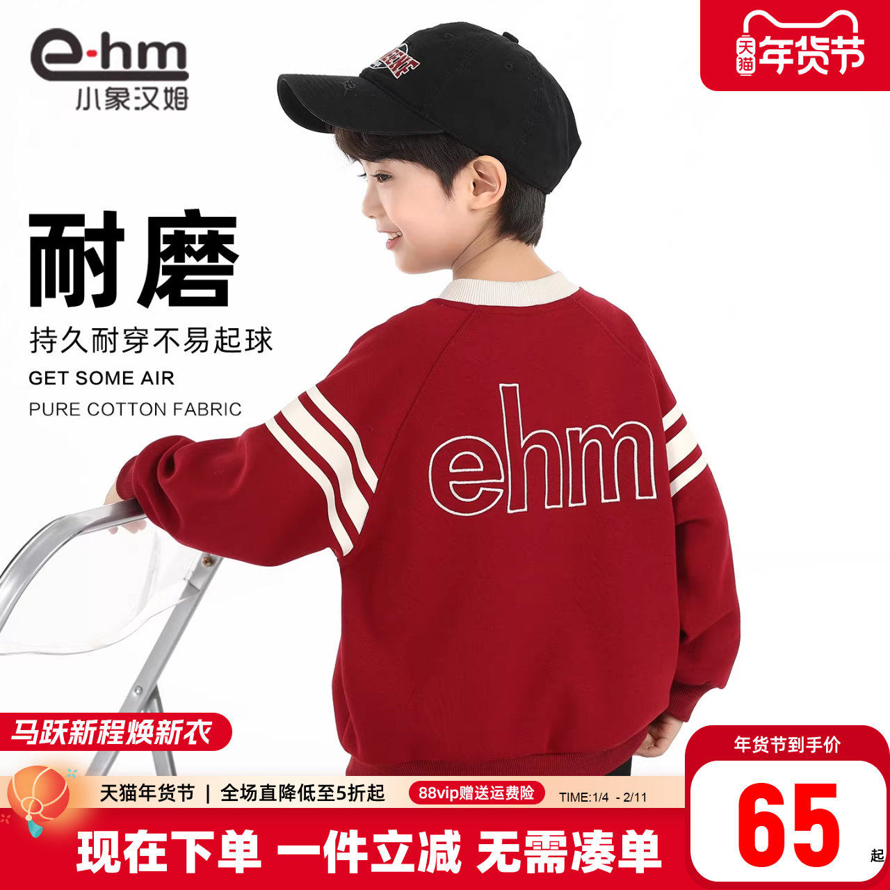 小象汉姆童装男童运动卫衣2026春装新款男孩上衣新年红色拜年服