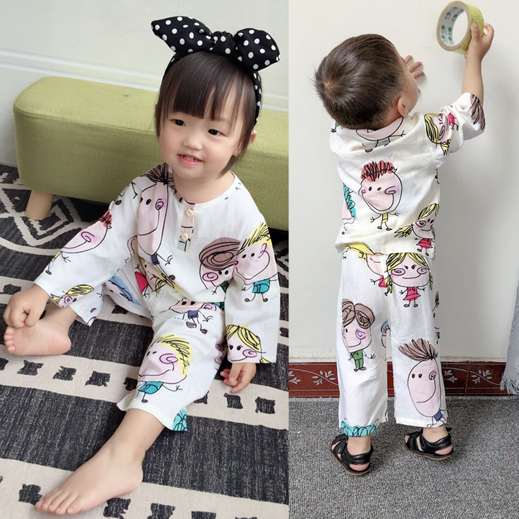 裁缝店选色定做儿童睡衣佰汇福棉绸套装男童女童女孩家居服空调服