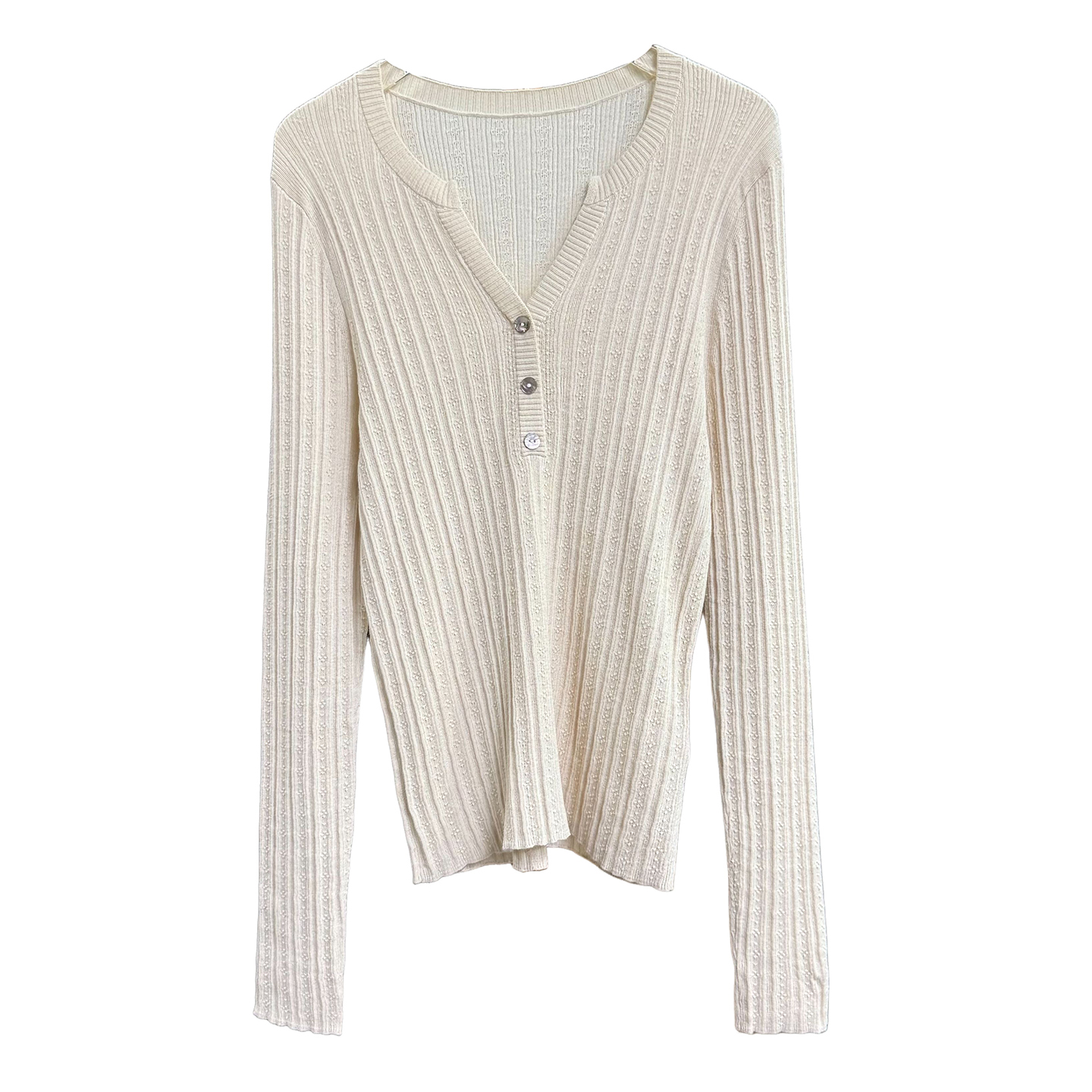 修身真丝羊毛V领长袖针织打底衫
