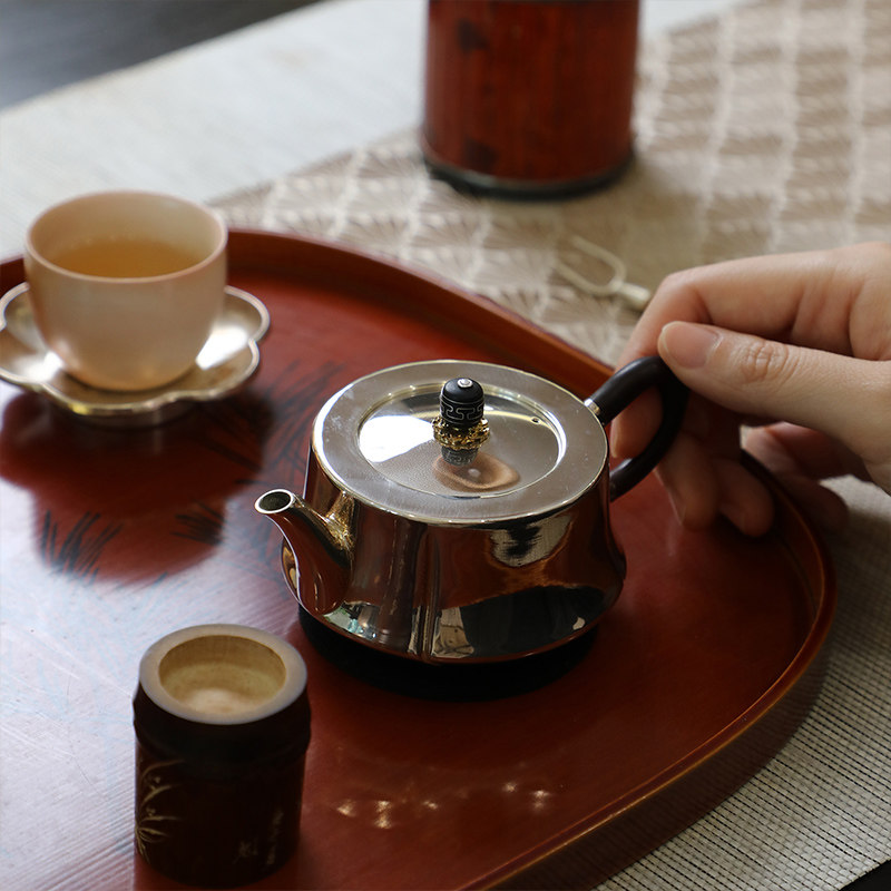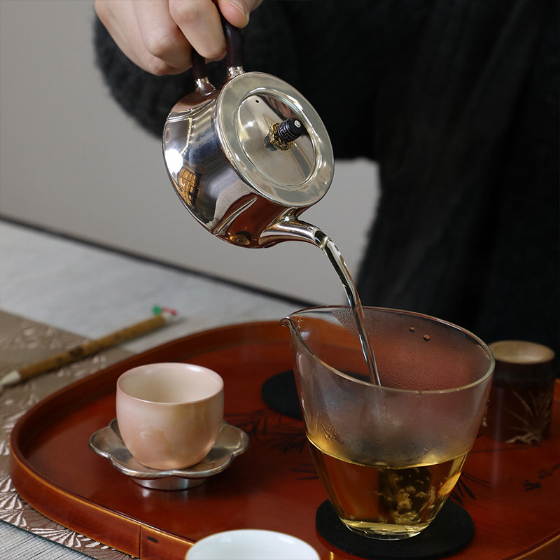 纯银时代 四瓣汉云泡茶壶足银999中式纯手工精致复古银茶壶150ml