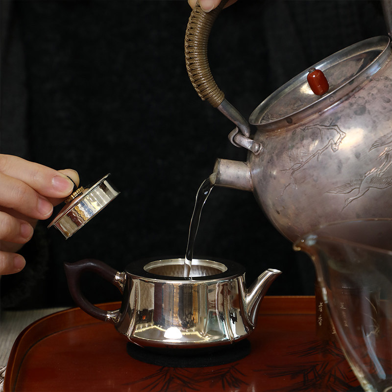 纯银时代四瓣汉云泡茶壶中式复古
