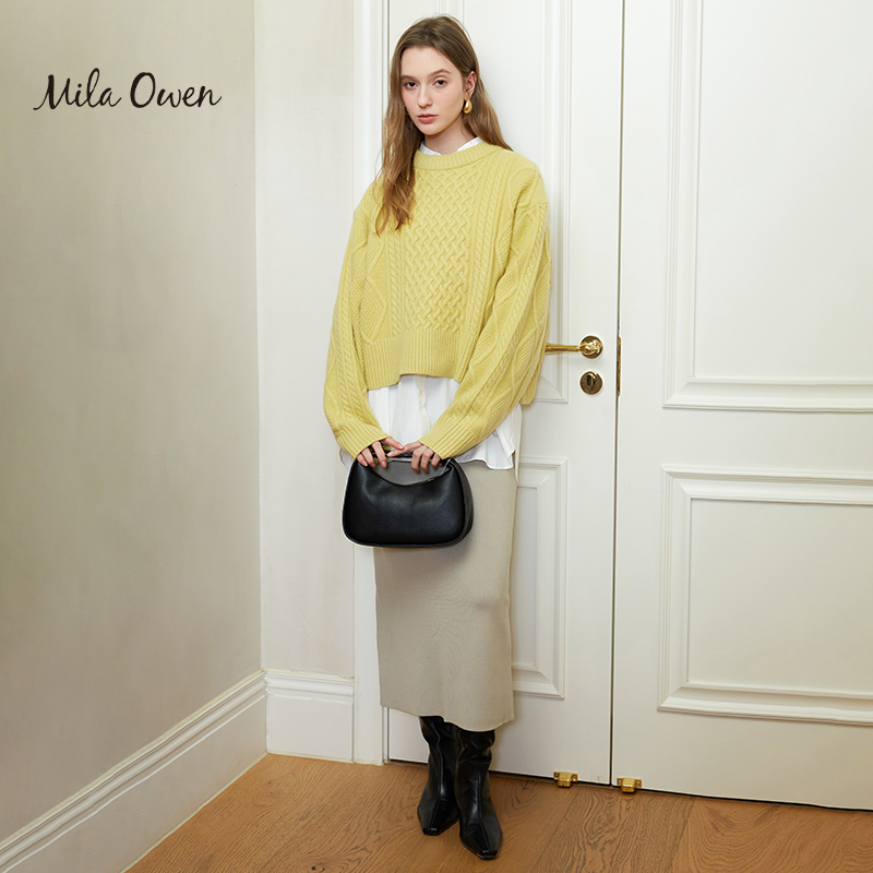 Mila Owen秋冬通勤优雅纯色简约针织直筒包臀半身裙09WNS231156