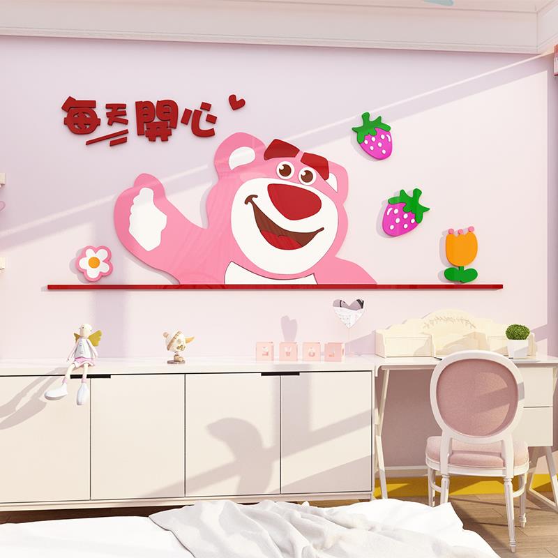 儿童房墙面装饰画女孩卧室卡通贴纸公主房间床头布置草莓熊墙贴纸