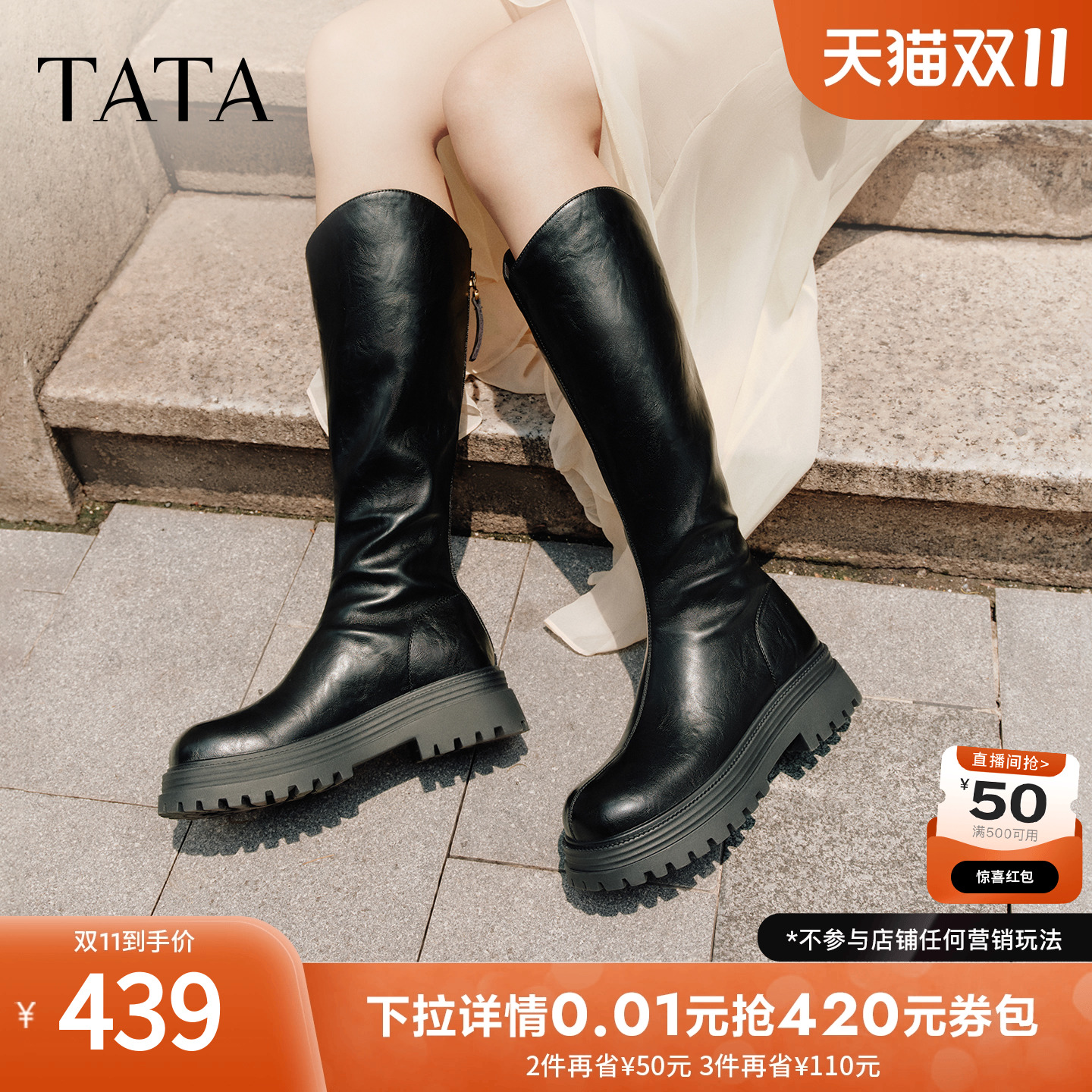TATA他她软糖靴2025长筒靴百搭骑士靴厚底加绒美拉德靴子CE301DG5