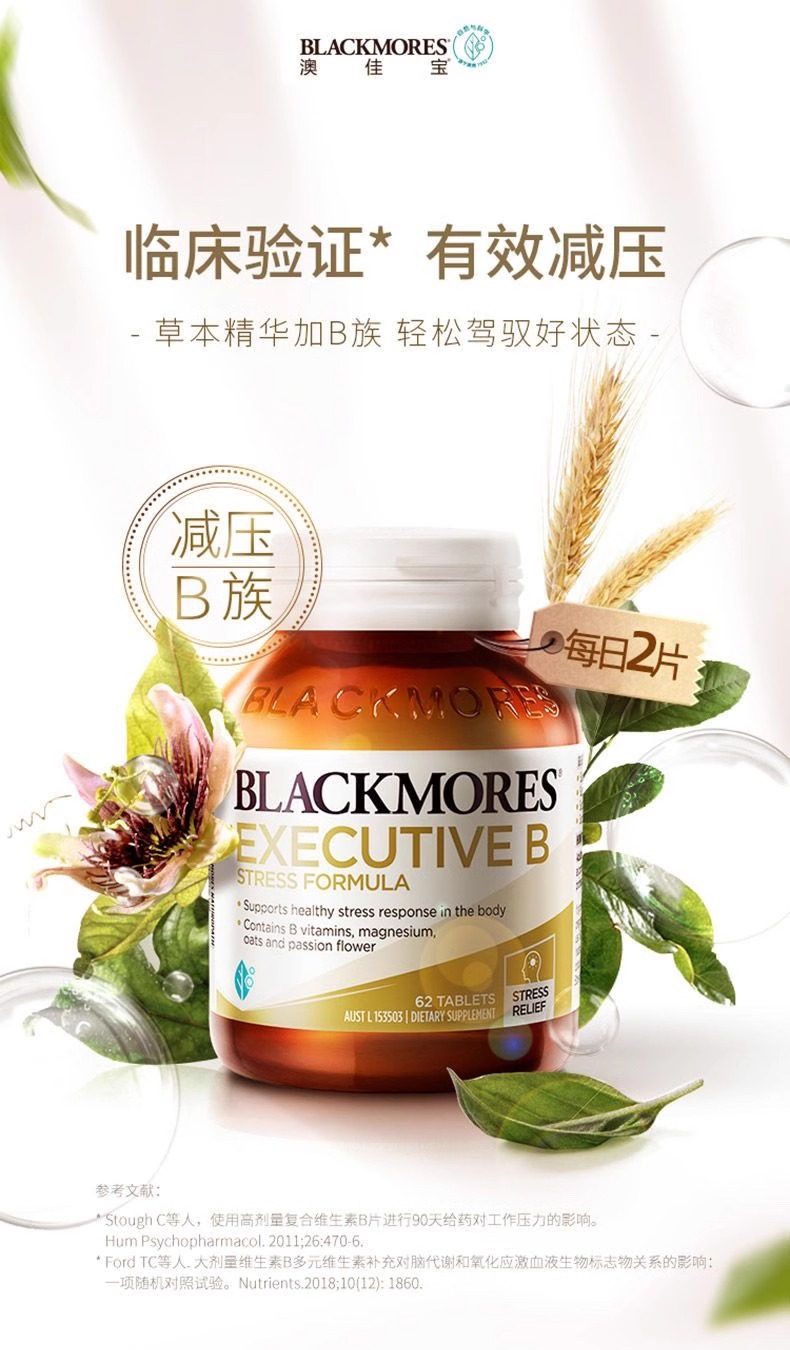澳佳宝Blackmores复合维生素B族减压片62粒成人疲劳压力焦虑