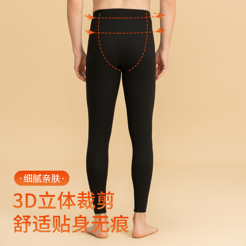 保卫橙色男士秋裤男保暖裤加绒加厚含羊绒蚕丝打底线裤衬裤