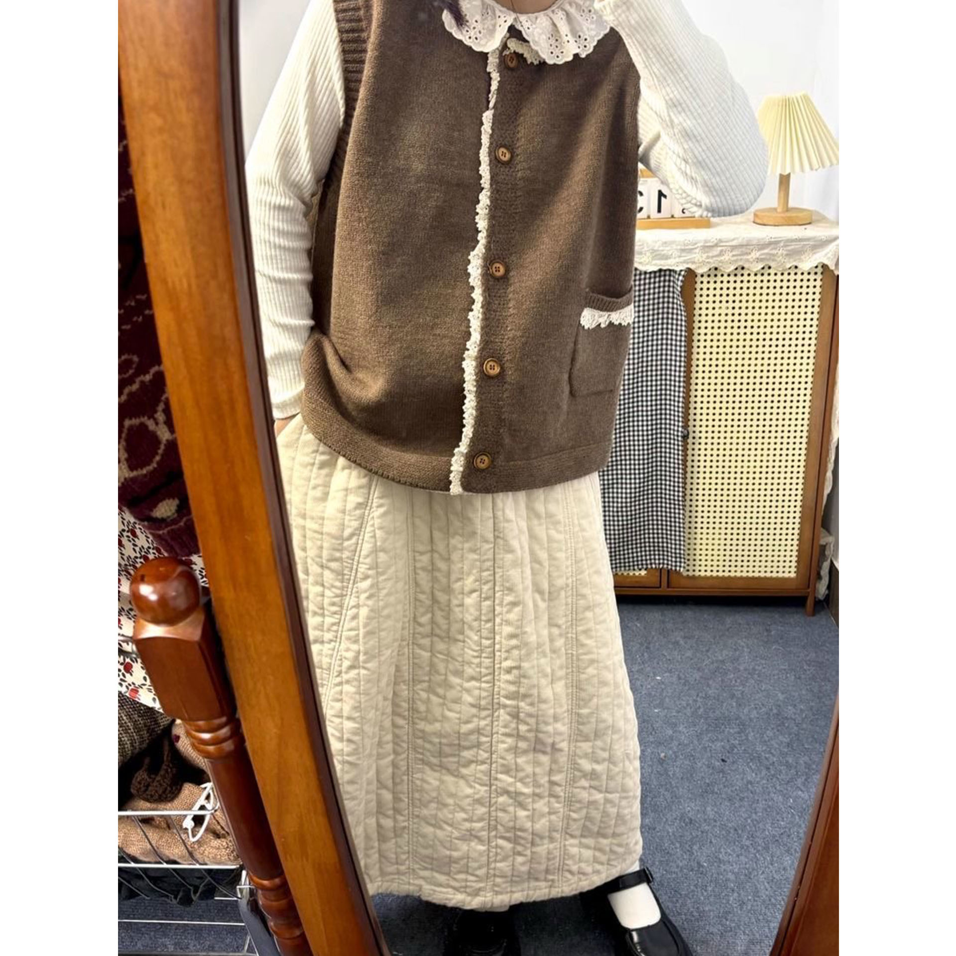 日系夹棉加厚半身裙女冬季轻熟风高腰保暖花苞裙A字直筒山本裙子