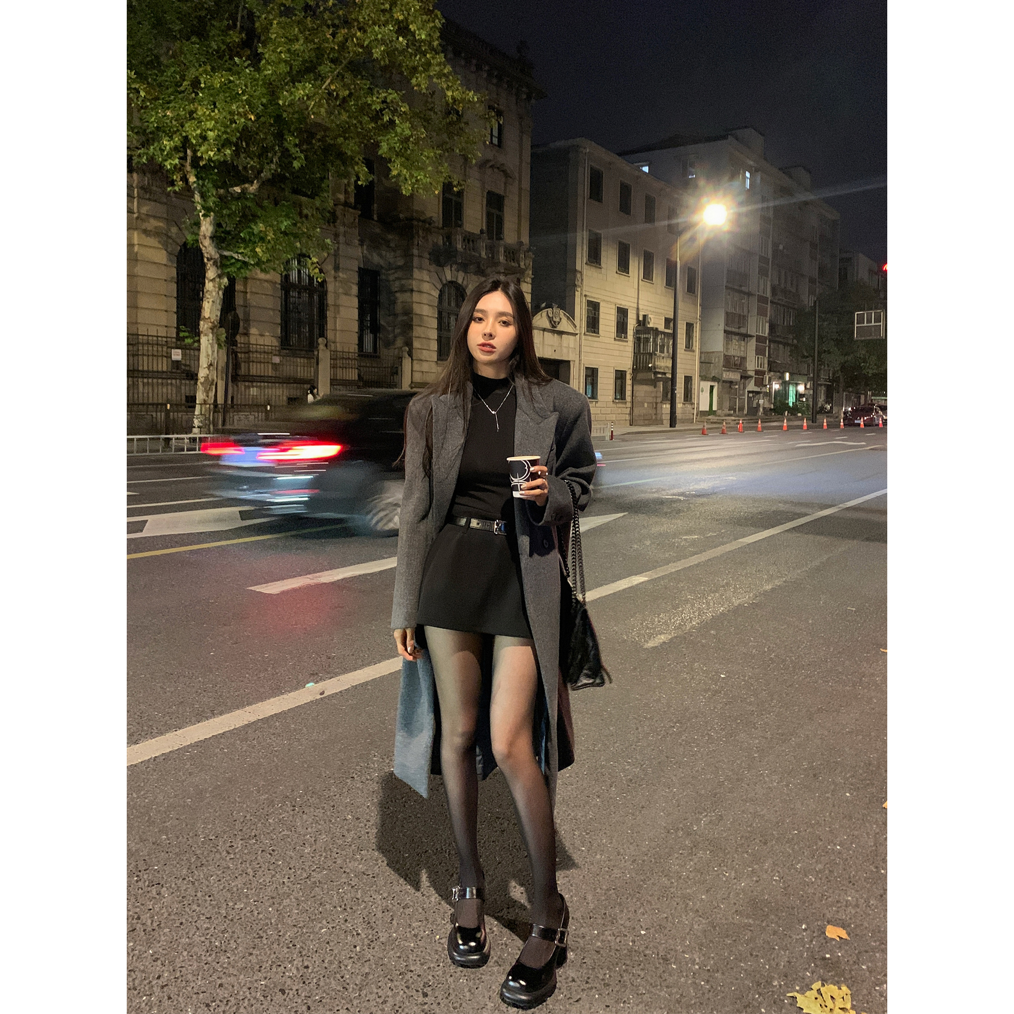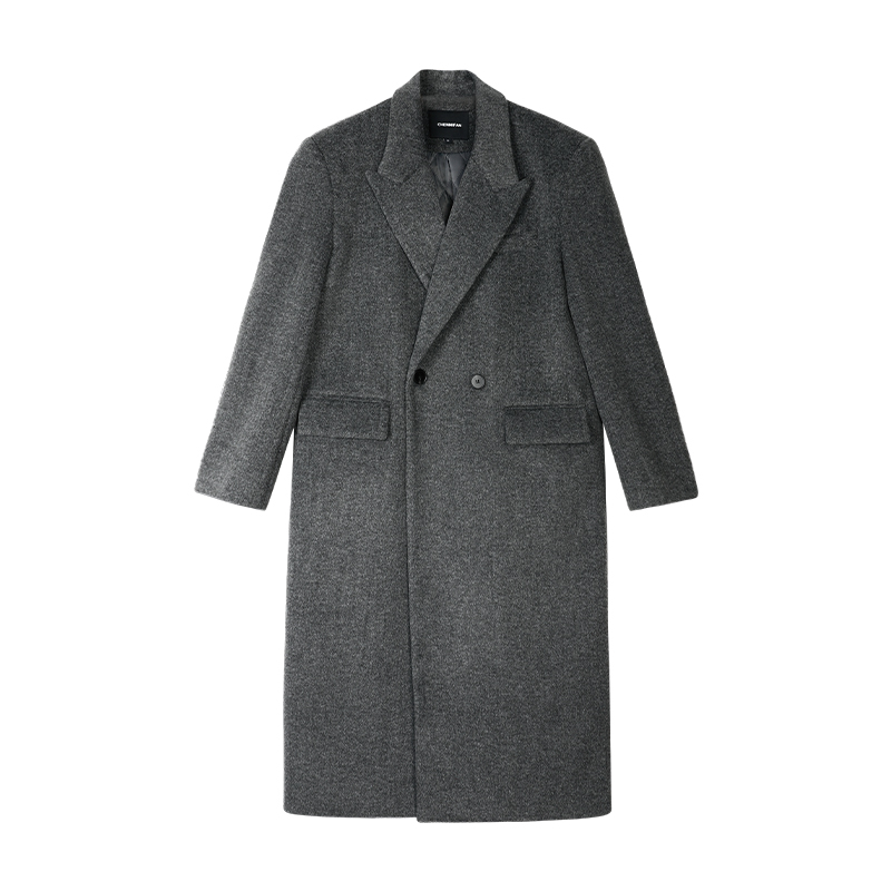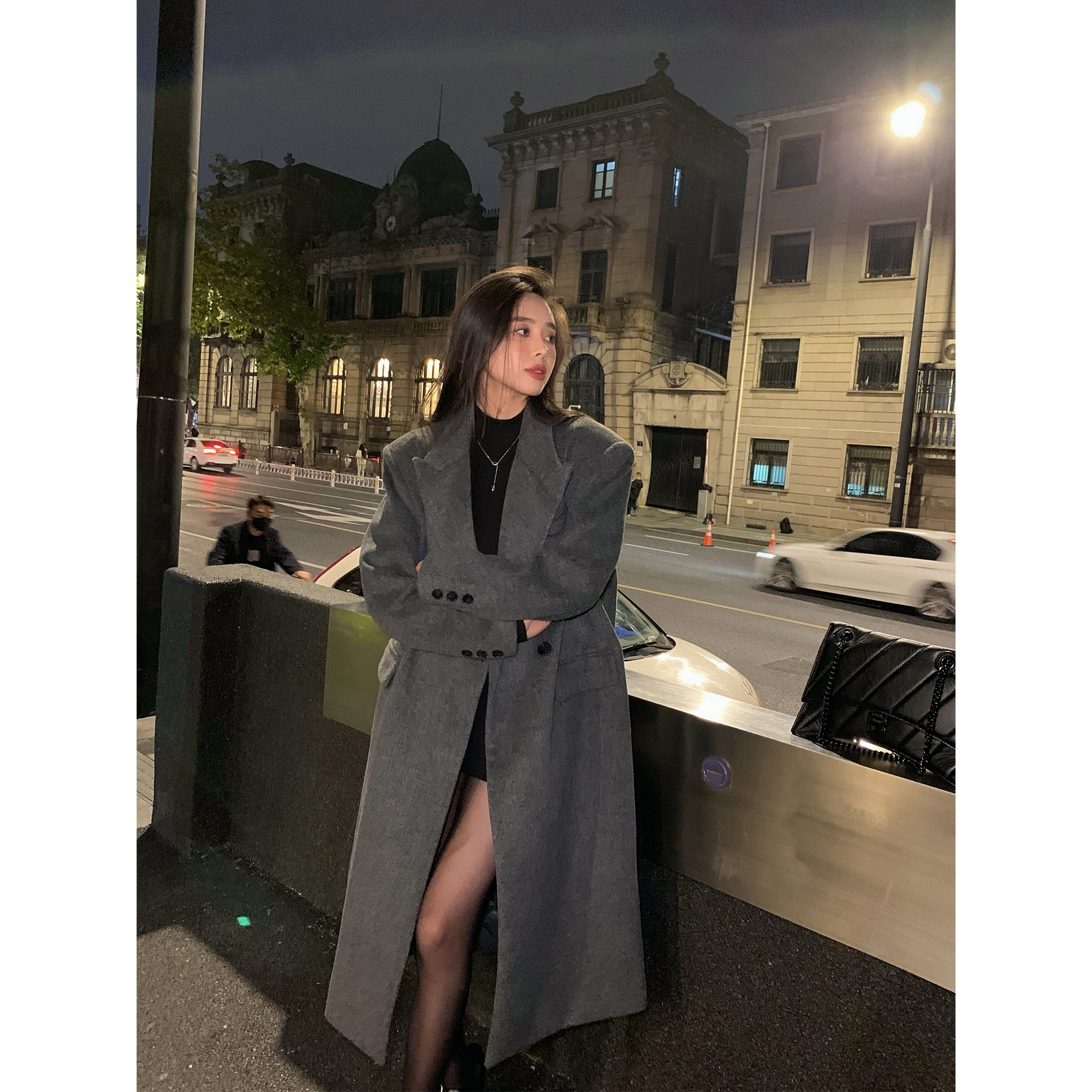 辰米范 灰色宽松长款毛呢外套女秋冬2024年显瘦加厚西装呢子大衣