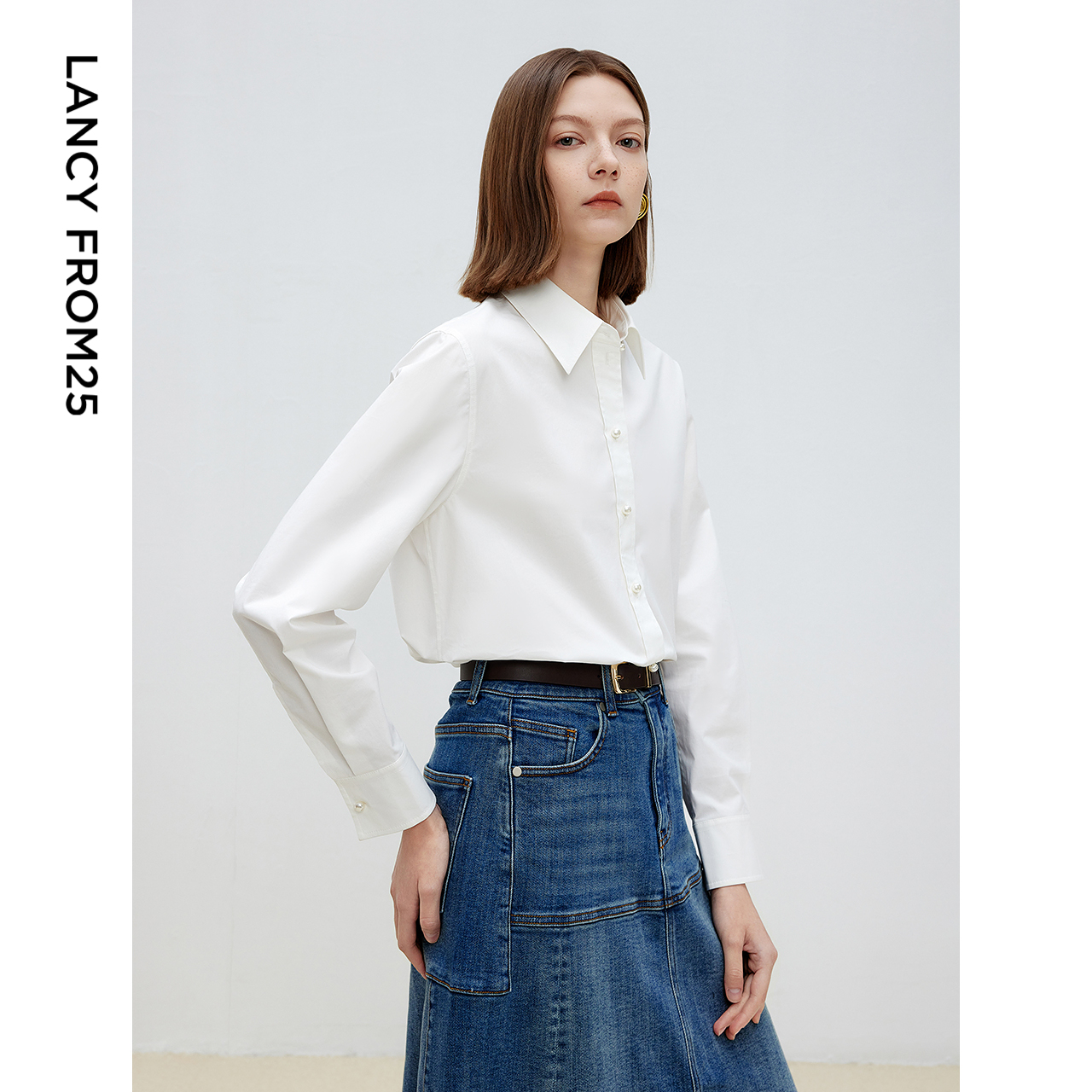 朗姿白色内搭衬衣复古2025年春季新款气质法式高级感长袖女士衬衫