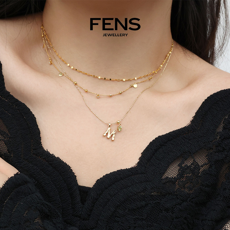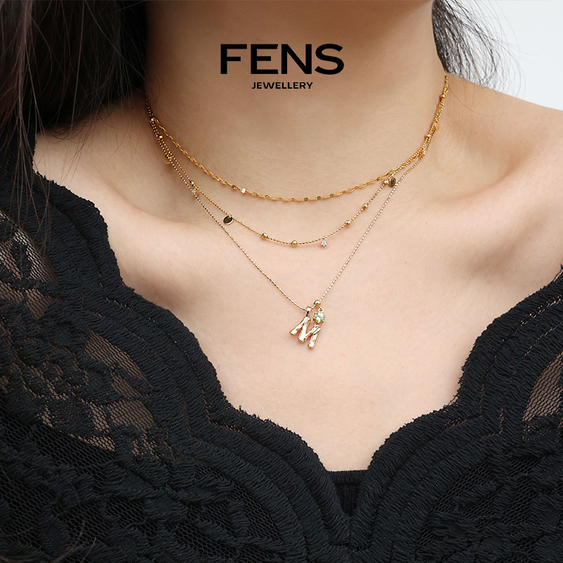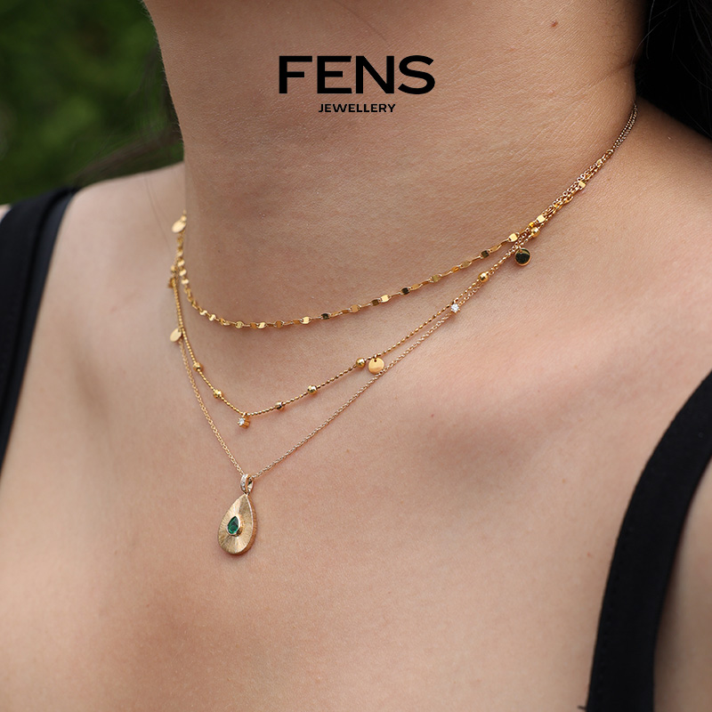FENS珠宝 纯欲链18K金项链女圆闪片钻石双层链叠戴