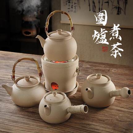 围炉煮茶炭电两用煮茶炉潮州砂铫壶原矿陶壶烧水壶耐热防烫提梁壶