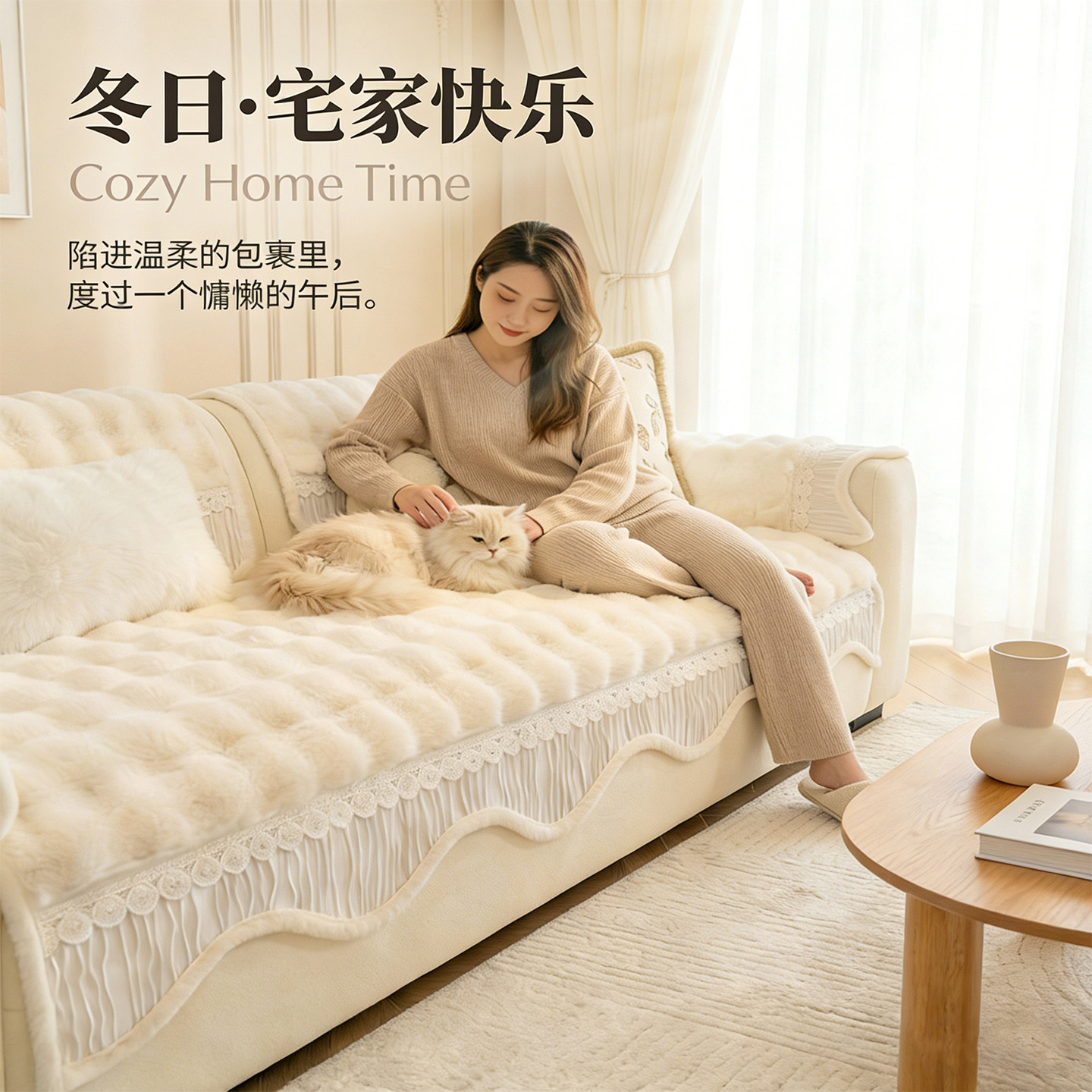 冬季皮沙发专用2026新款加厚兔毛绒皮沙发坐垫一片式防滑沙发盖布
