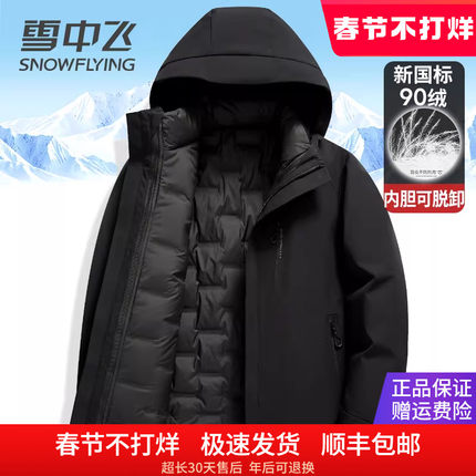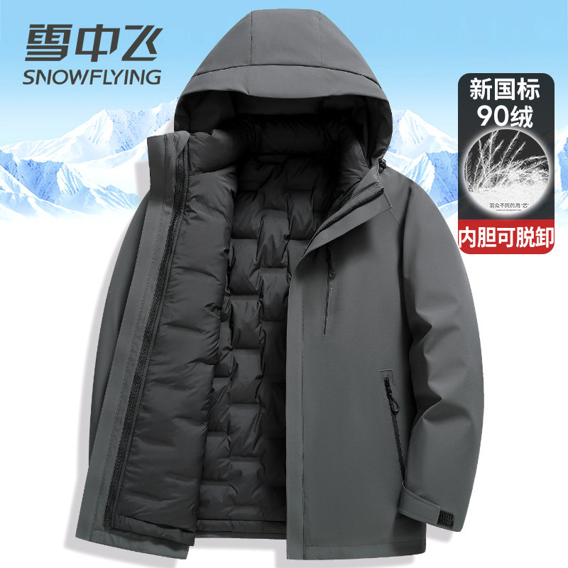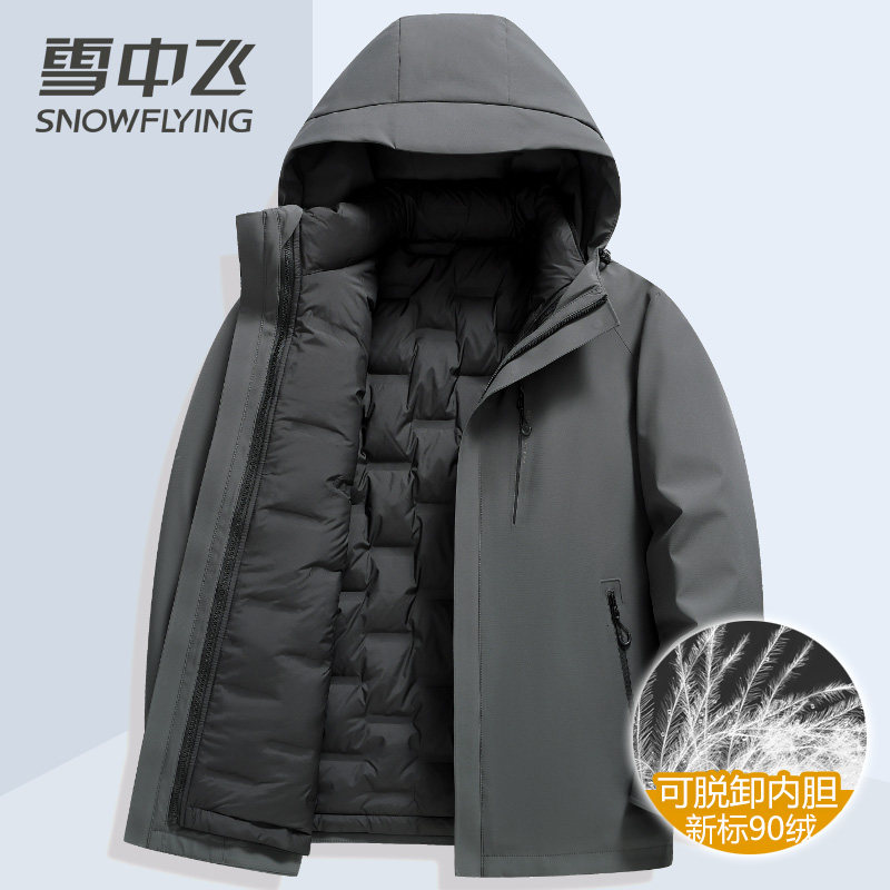 雪中飞男士羽绒服连帽休闲百搭加厚摇粒绒内胆可脱卸冬季鸭绒外套