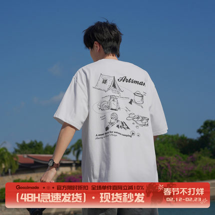 GOOZI MADE 270g重磅纯棉印花短袖T恤男夏季2026新款男生半袖男款