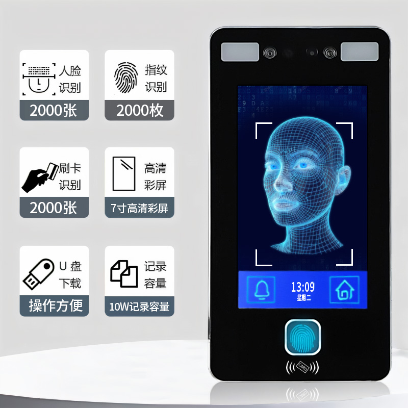 人脸识别7寸动态门禁系统一体机指纹机玻璃门控磁力锁打卡考勤机