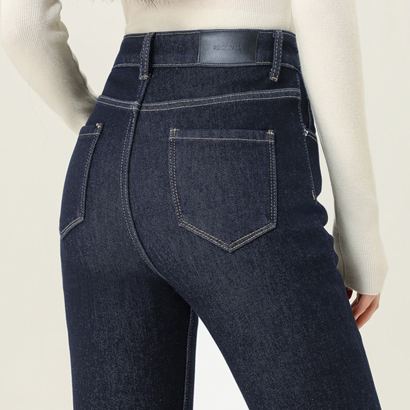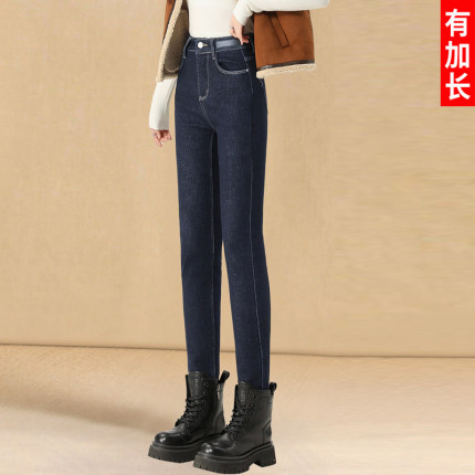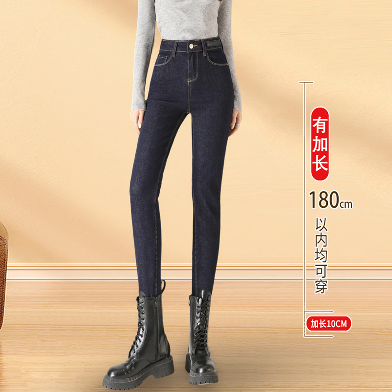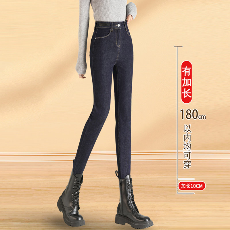 加长加绒小脚牛仔裤女秋冬2024年新款高个子深蓝色丹宁紧身铅笔裤