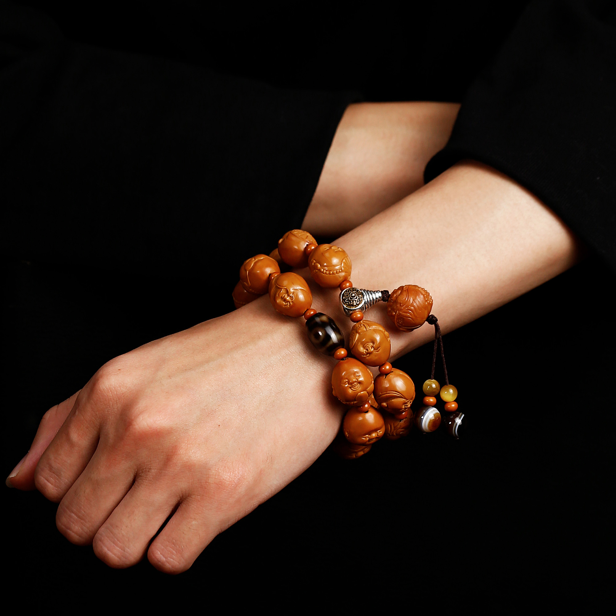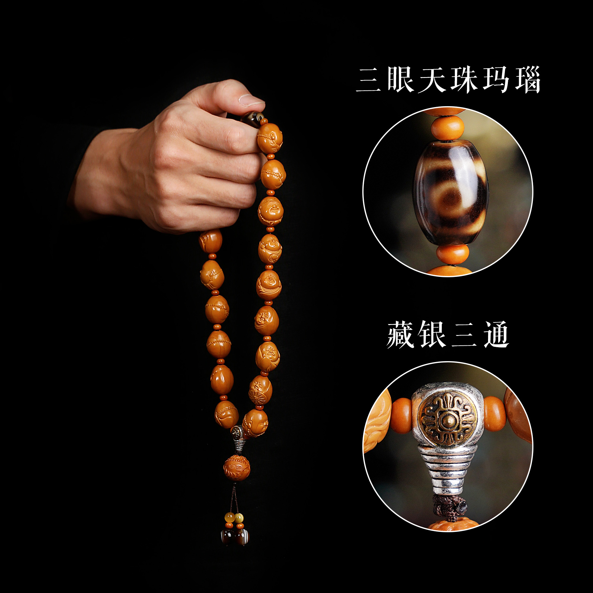 橄榄核手串原籽雕刻众生相佛念珠配饰三眼天珠盘文玩菩提男女手持