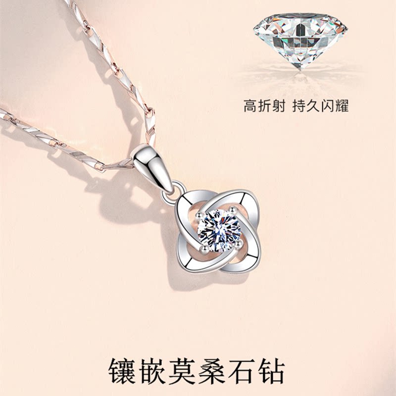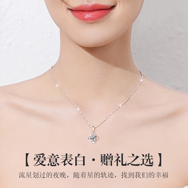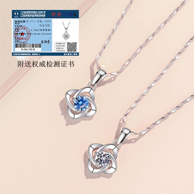 四叶草PT999纯铂金项链女锁骨白金钻石吊坠情人节送老婆女友礼物