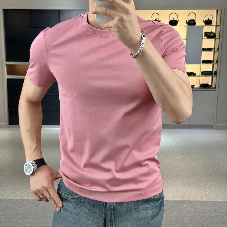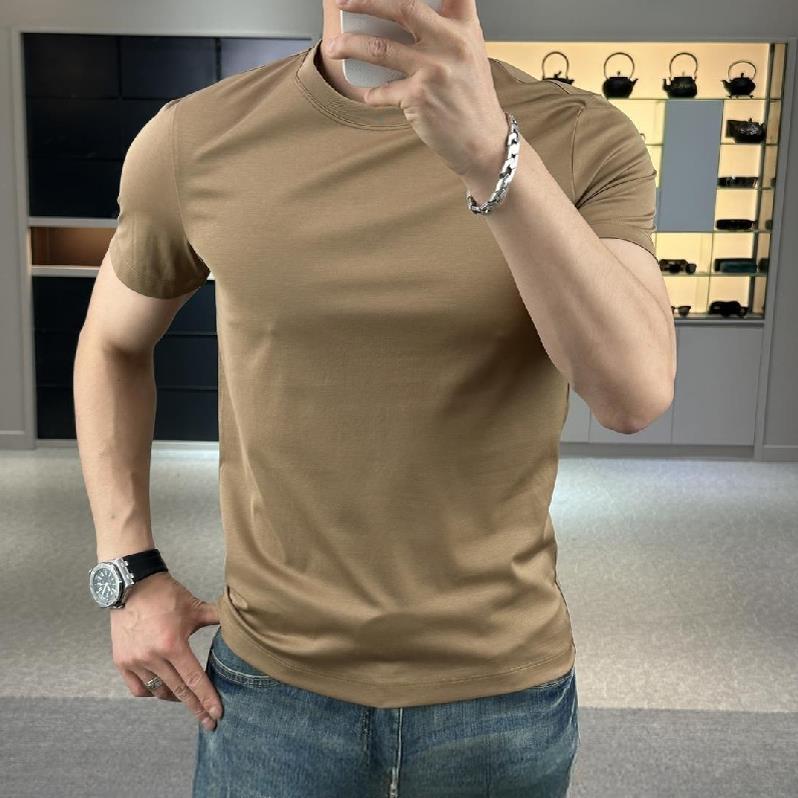 2025夏季液氨匹马丝光棉抗皱舒适纯色短袖t恤男修身轻奢半袖体恤