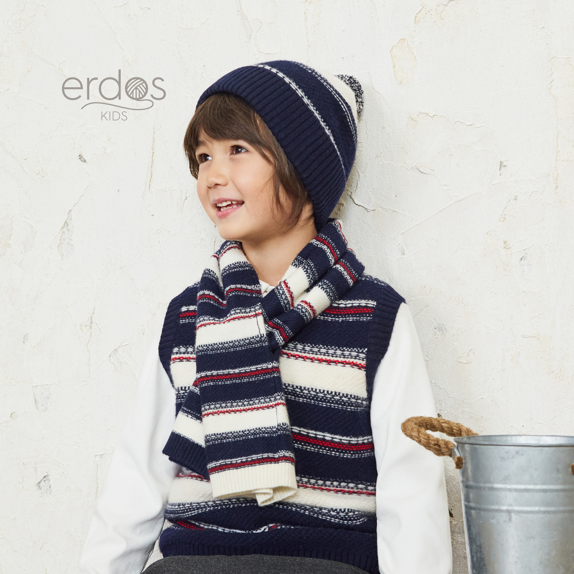 erdosKIDS 鄂尔多斯童装25秋冬新品男女童纯羊绒帽子围巾两件套