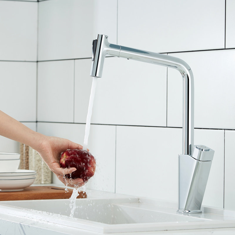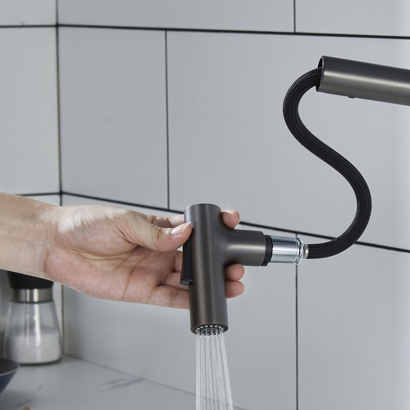 LANCE拉丝枪灰色厨房抽拉水龙头全铜冷热洗菜盆洗碗池黑色水龙头