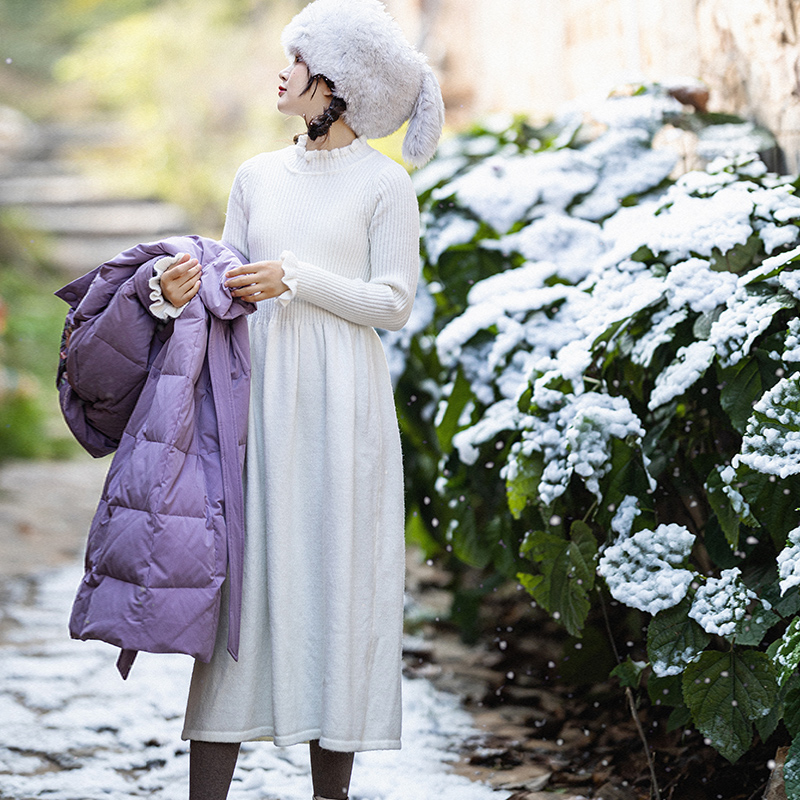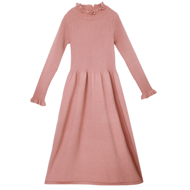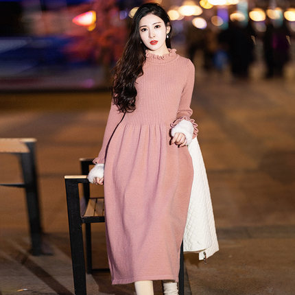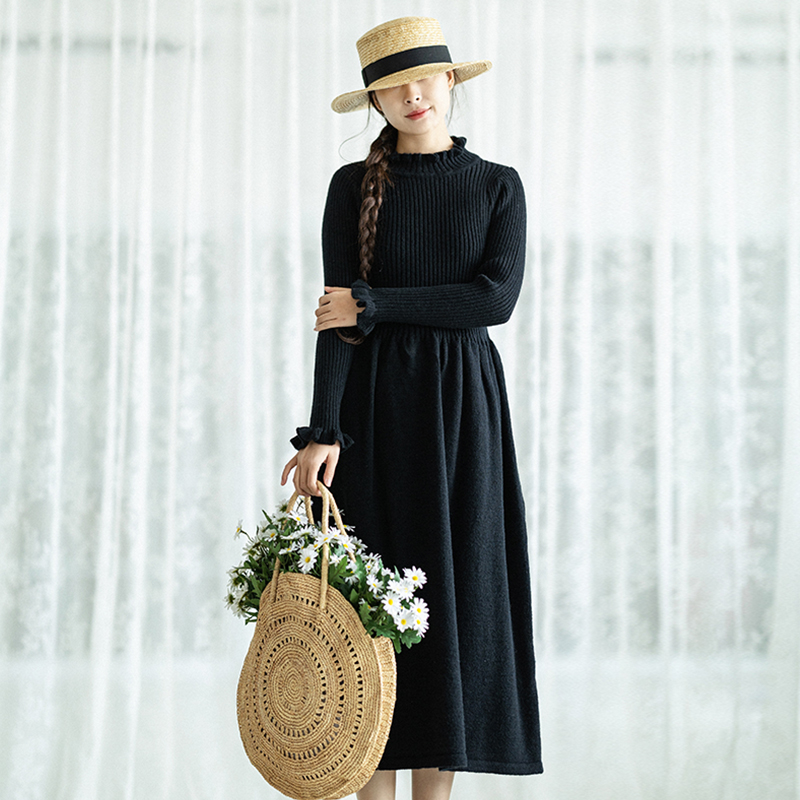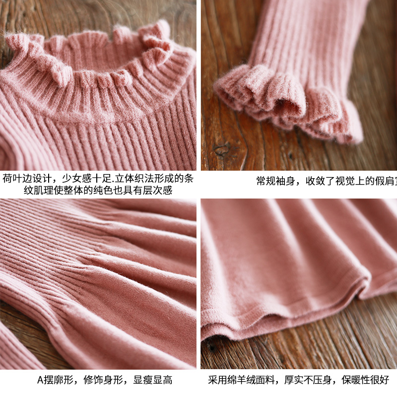 棉麻记多色针织连衣裙女加厚2025秋季新款荷叶边毛衣裙打底裙内搭
