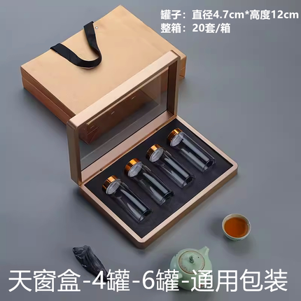 高档玻璃瓶 4罐/6罐虫草藏红花茶叶药材金线莲通用礼盒礼品盒空盒
