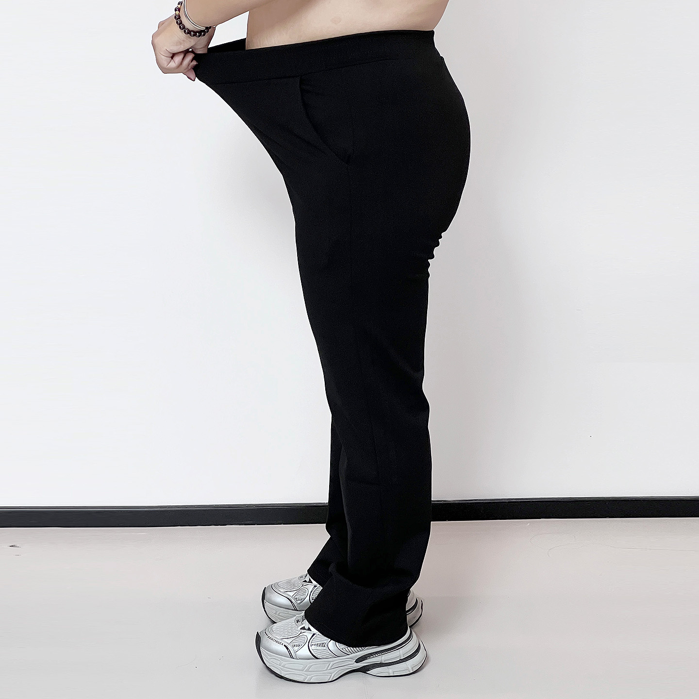 300斤胖mm大码女裤休闲直筒加绒裤 加肥秋高腰弹力保暖小直筒长裤