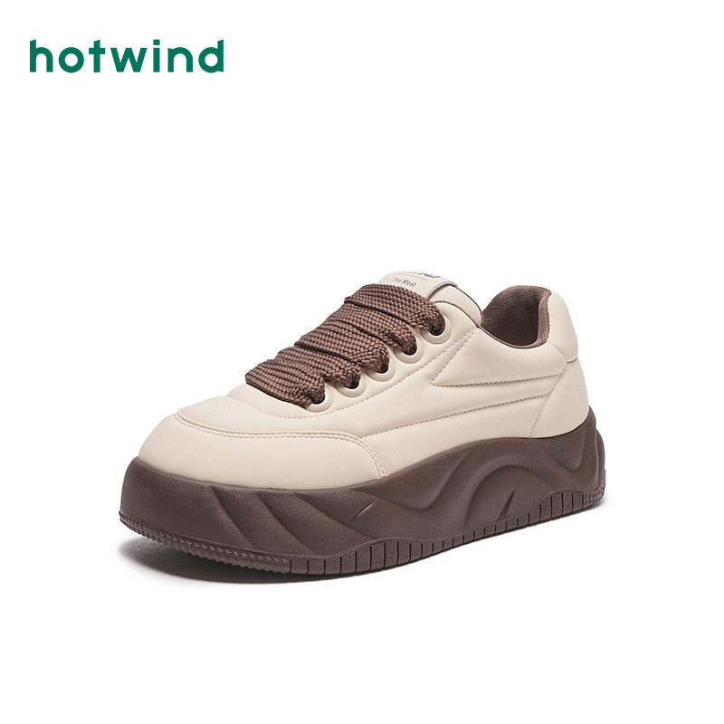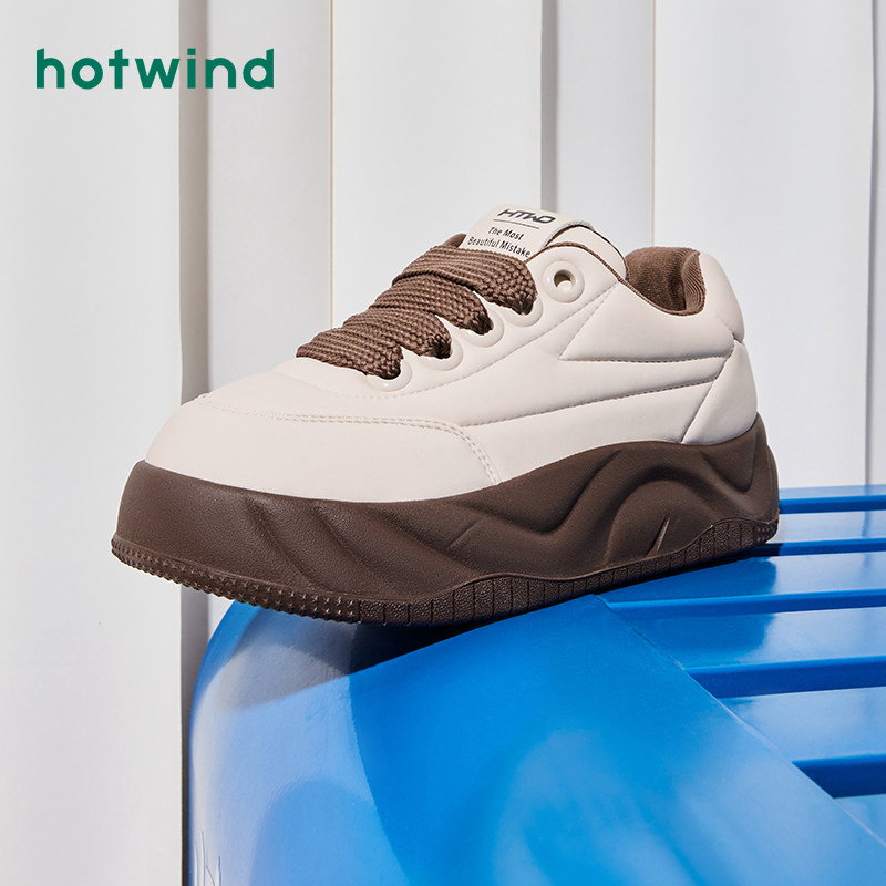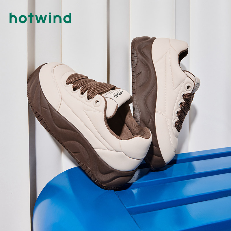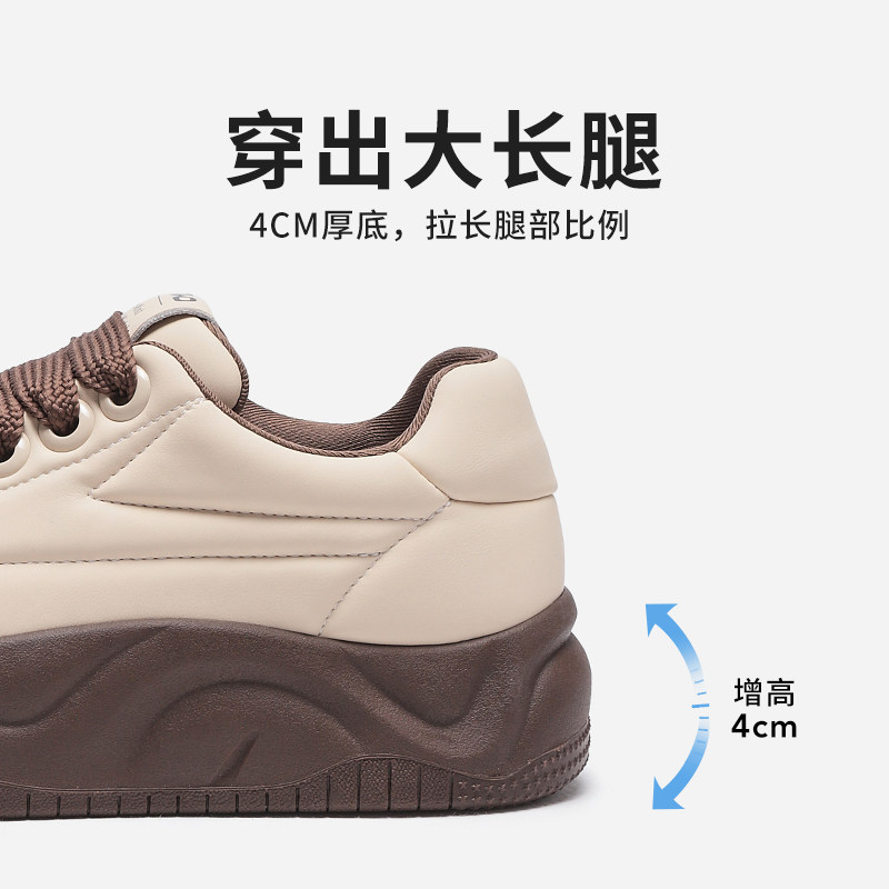 热风秋季新款女士潮流厚底面包鞋圆头休闲板鞋低帮小白鞋女