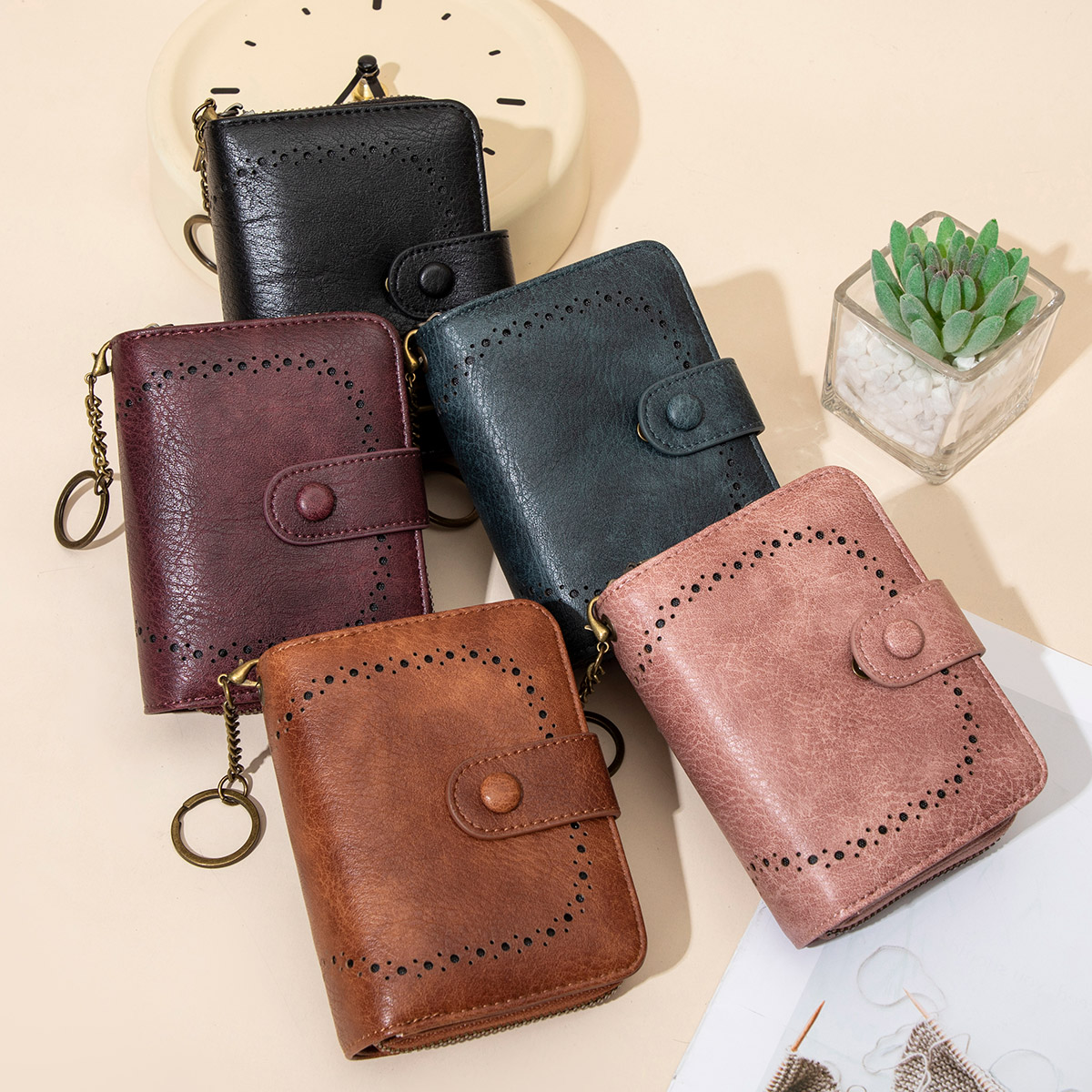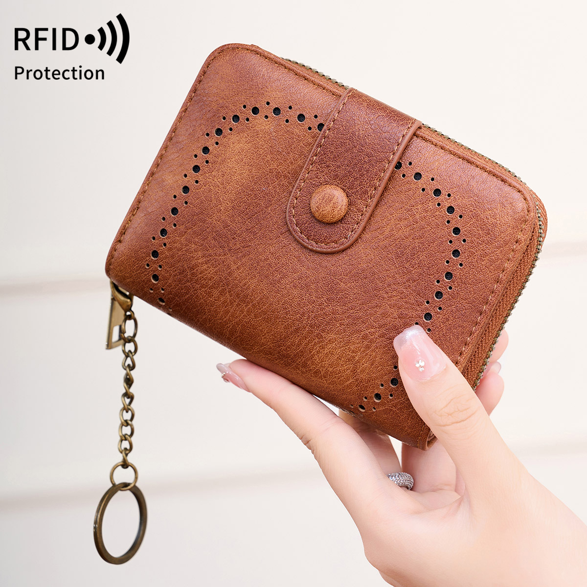 米印复古防盗刷男女通用风琴卡包短款便携多功能拉链钱包零钱包