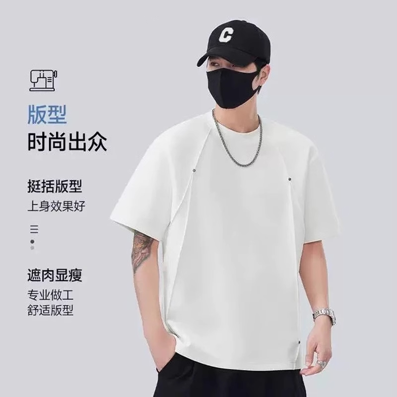 【立体压褶铆钉】2025新款宽松休闲男士t恤短袖男生衣服高级GH-2