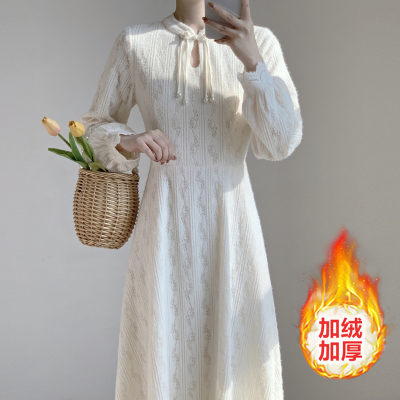 新中式旗袍改良2025新款秋冬季大衣内搭打底裙加绒加厚长袖连衣裙