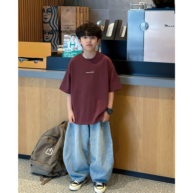 凯文家童装2025年夏季新品男童中大童韩版简约字母儿童短袖T恤衫