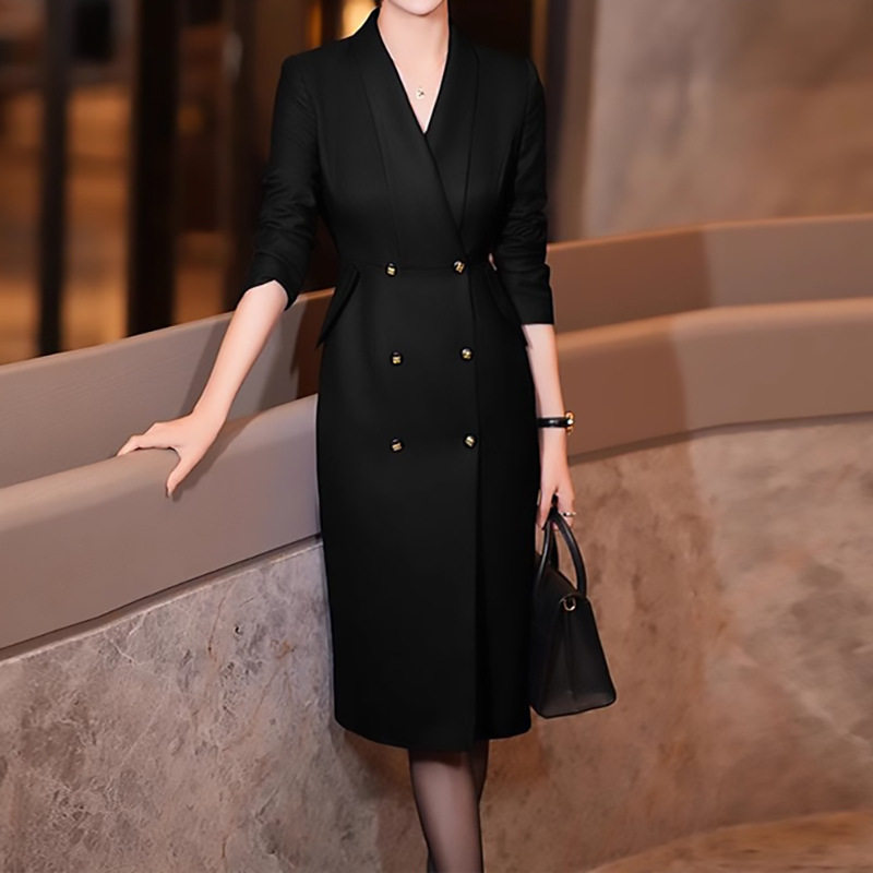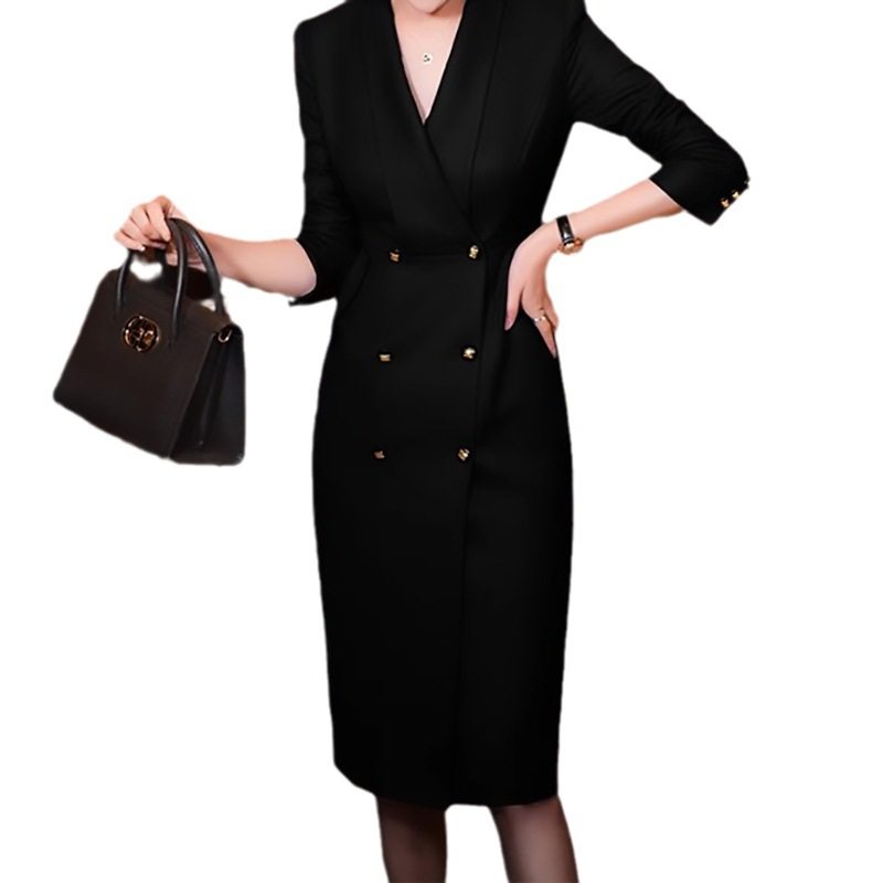 女人好闺蜜黑色西装连衣裙女新款高JI感气质通勤修身中长裙