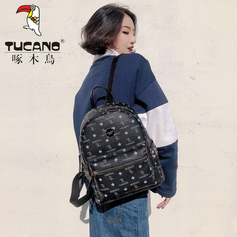 啄木鸟双肩包女2024年新款韩版潮时尚百搭书包铆钉旅行背包大容量