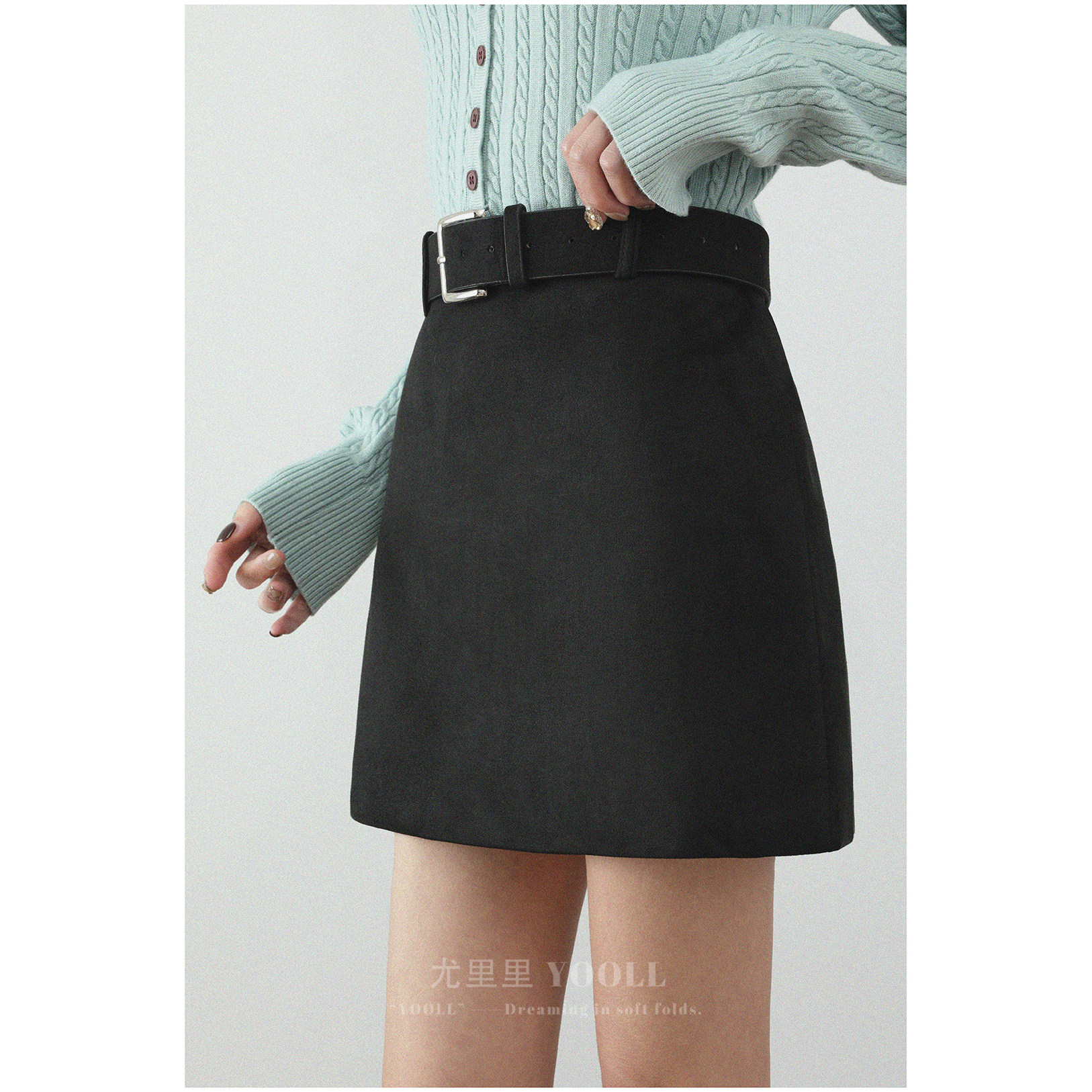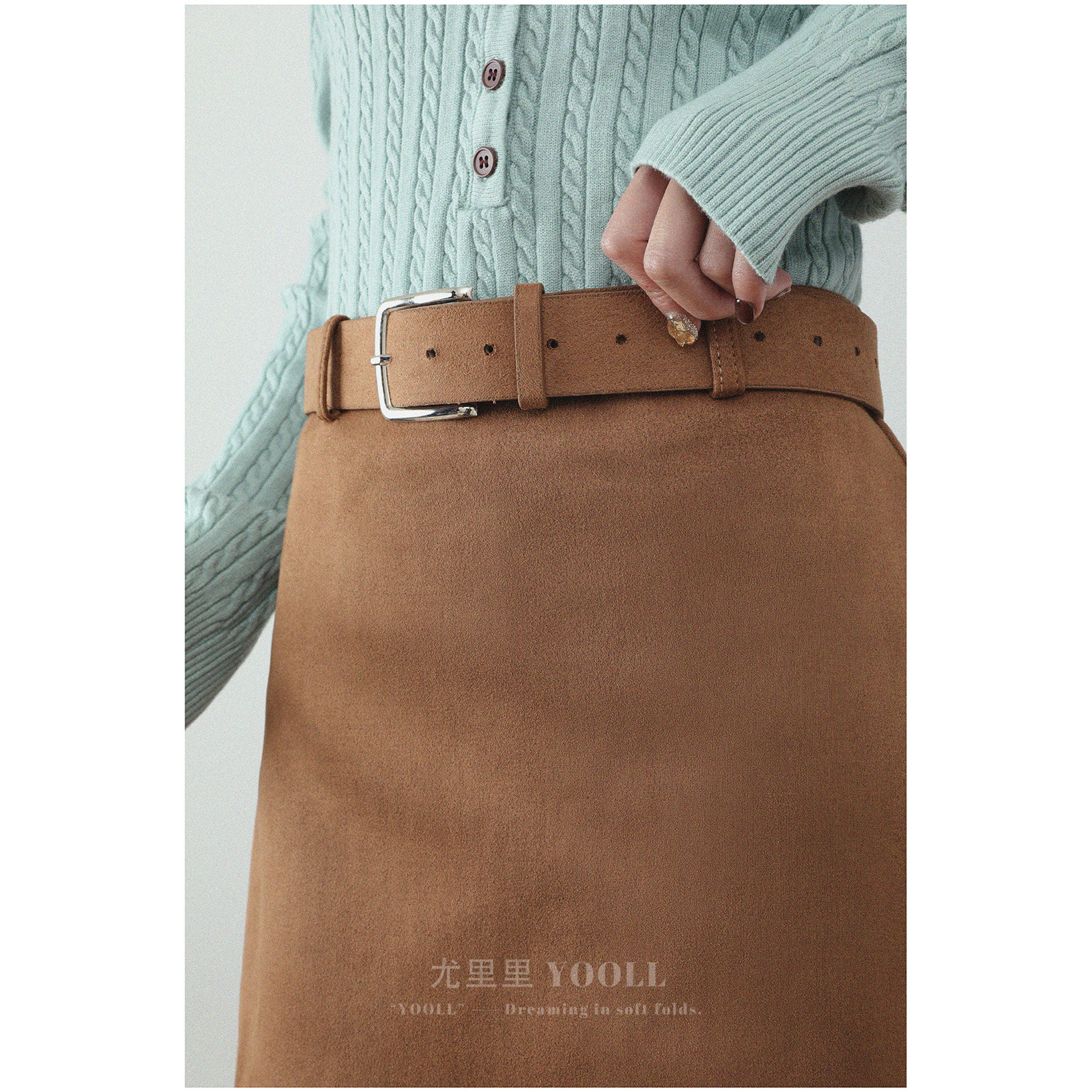 美拉德麂皮绒咖色半身裙春秋新款高腰显瘦A字短裙甜美辣妹包臀裙