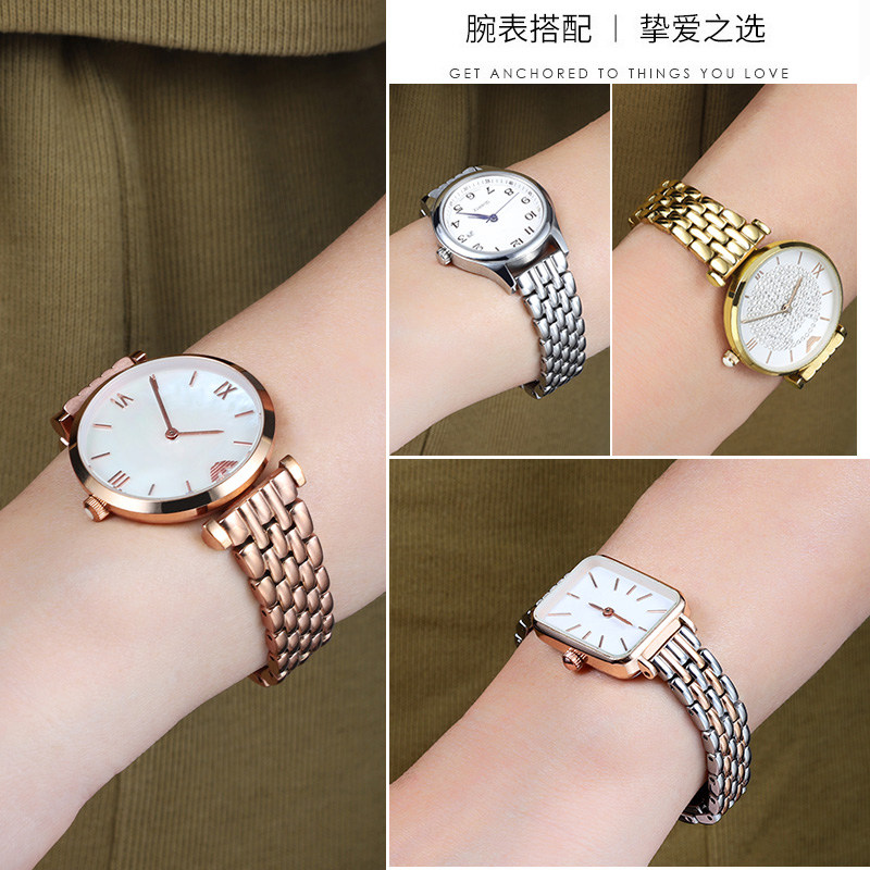 适配阿玛尼AR1763 1684 1961 1926 11244白月光精钢手表链女10mm