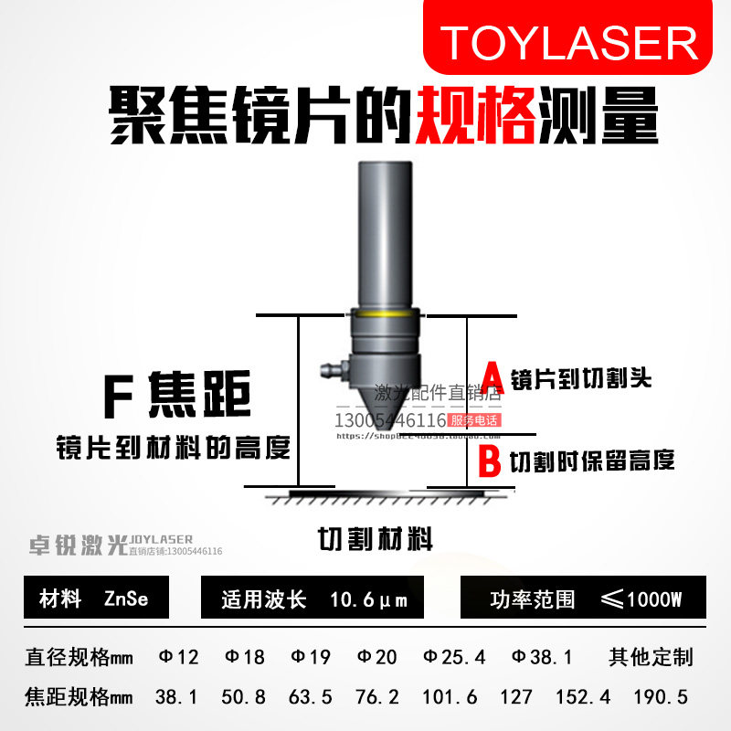 激光聚焦镜片激光管激光雕刻机切割机配件镜片透镜20聚光激光镜片