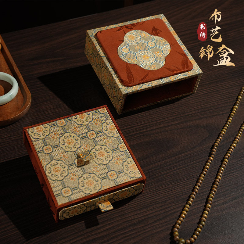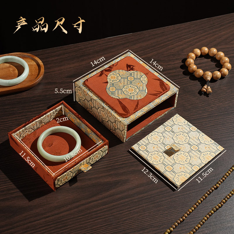 珠宝首饰盒刺绣布盒锦盒古风翡翠手链礼品盒手镯手串玉镯盒包装盒