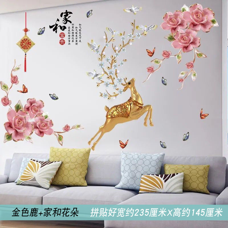 中国风墙贴自粘客厅沙发电视背景墙上贴纸装饰卧室3d立体视觉贴画
